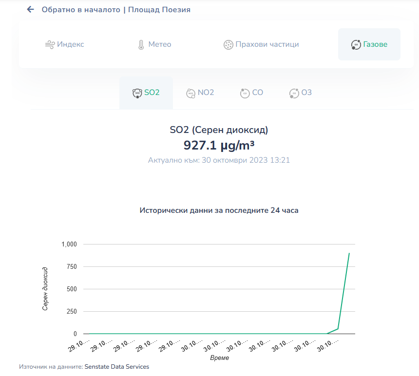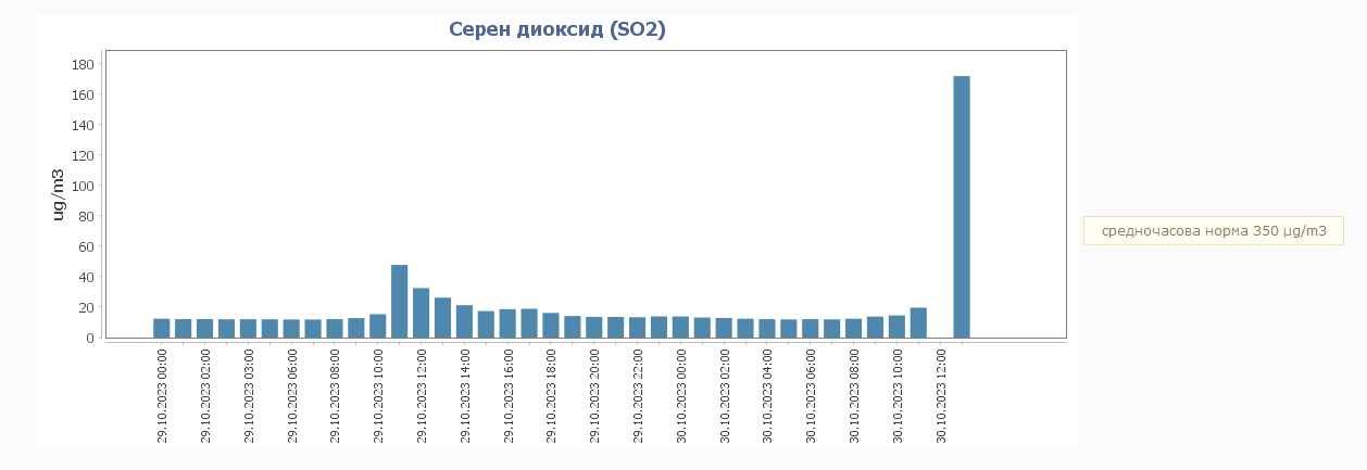 Тези залпови краткотрайни повишавания на серния диоксид е възможно да доведат до превишение на допустими норми за опазване на човешкото здраве до 350 µg/m3, средно за час, но за това ще разберем час и половина по-късно.