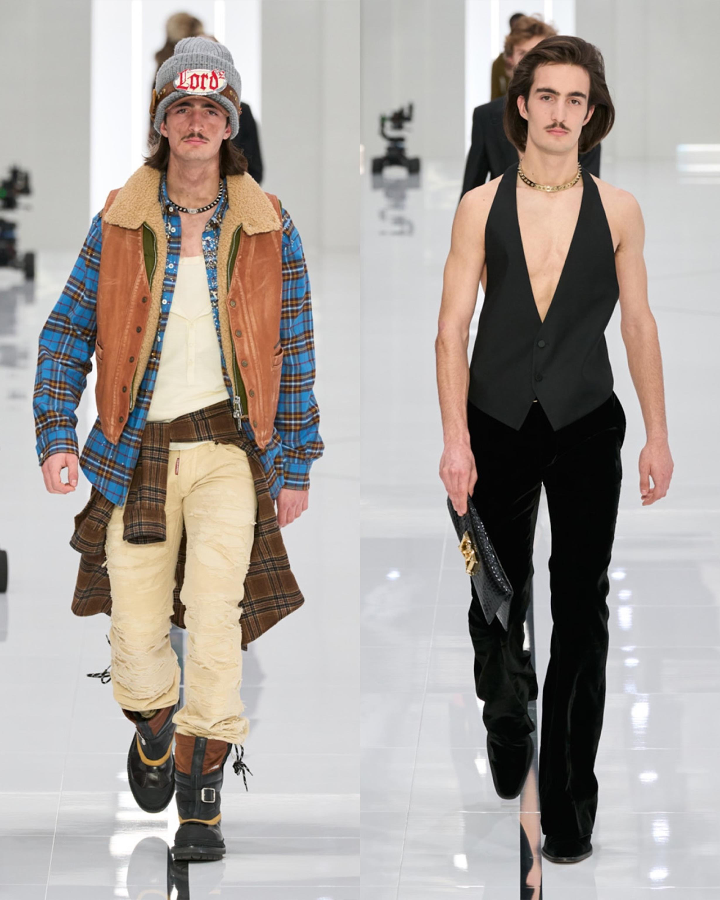 За дефилето си създателите на марката Dsquared2 бяха заложили на ефекта на "близнаците". На средата на модния подиум беше разположена трансформираща капсула, представляваща магията на модата - облечен в уличен стил манекен излизаше като своя подобрена "вечерна" версия и обратното.