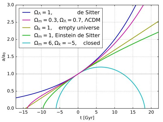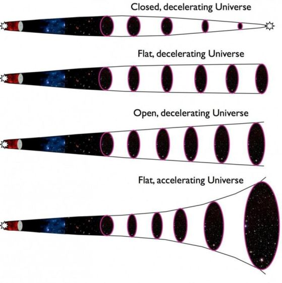 Във физическата космология има два конкуриращи се фактора, които играят роля в разширяващата се Вселена. От една страна, има първоначалната скорост на разширение: скоростта, с която самото пространство се разширява в началото на горещия Голям взрив, когато Вселената е най-гореща, най-плътна и най-еднородна. Но от друга страна, съществуват ефектите на гравитацията: тенденцията материята и енергията да привличат и изкривяват пространство-времето и да се опитват да „свият“ Вселената отново в някакъв смисъл. Ако нашата Вселена се състои само от материя и радиация и започва с разширяване, тогава има три възможности за евентуалната съдба на Вселената.