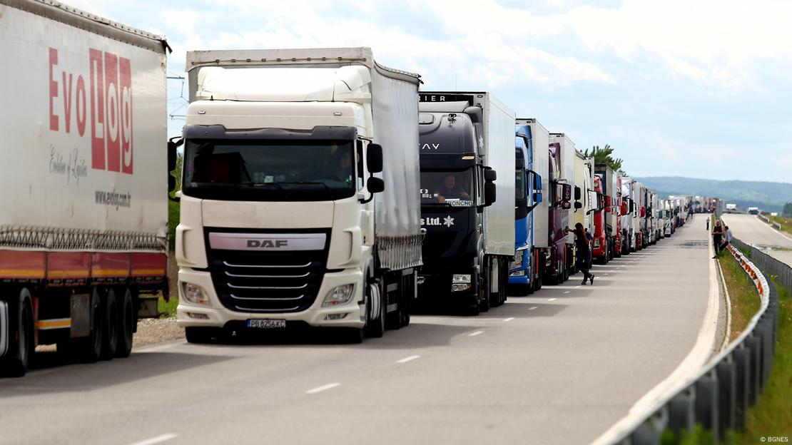 Километрични опашки от тирове край Видин-Калафат Снимка: BGNES