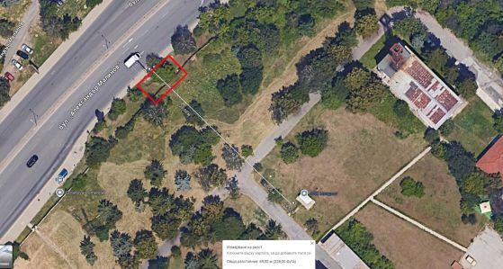 Автоматичната измервателна станция (АИС) Младост, която трябва да измерва замърсяването от транспорта, е поставена в зелена площ на 65 метра от най-близката улица, според данните от доклада. Изискванията за измерване на азотен диоксид са тя да бъде на максимум 10 метра от бордюра (зоната в червено - разстоянията на графиката са приблизителни).