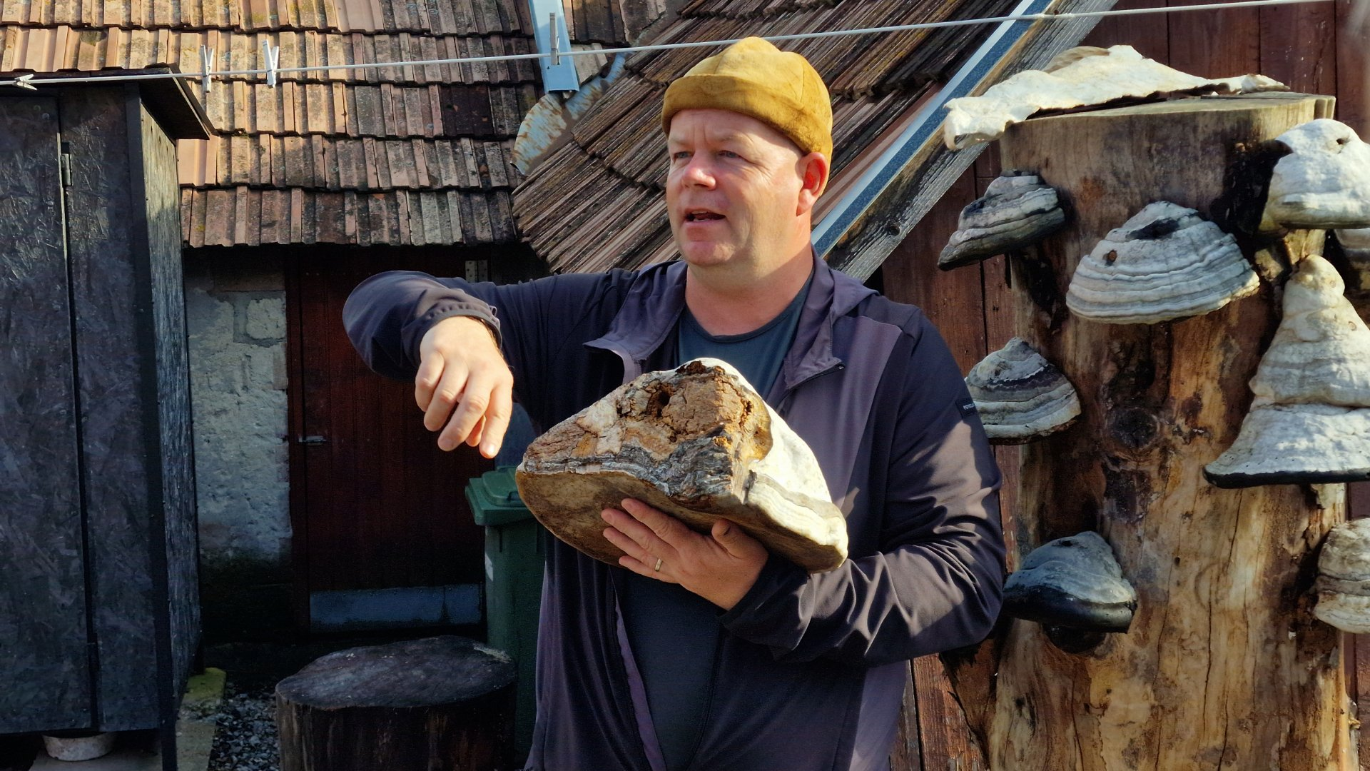 „Той сега е на 74 години, но се движи в гората по-живо от мен (смее се). Имре е научил занаята от баща си и това е правил цял живот“, обяснява Золтан. Той посочва шапката от гъба на главата си и разкзазва, че цялата топлина се изпарява от другата страна.