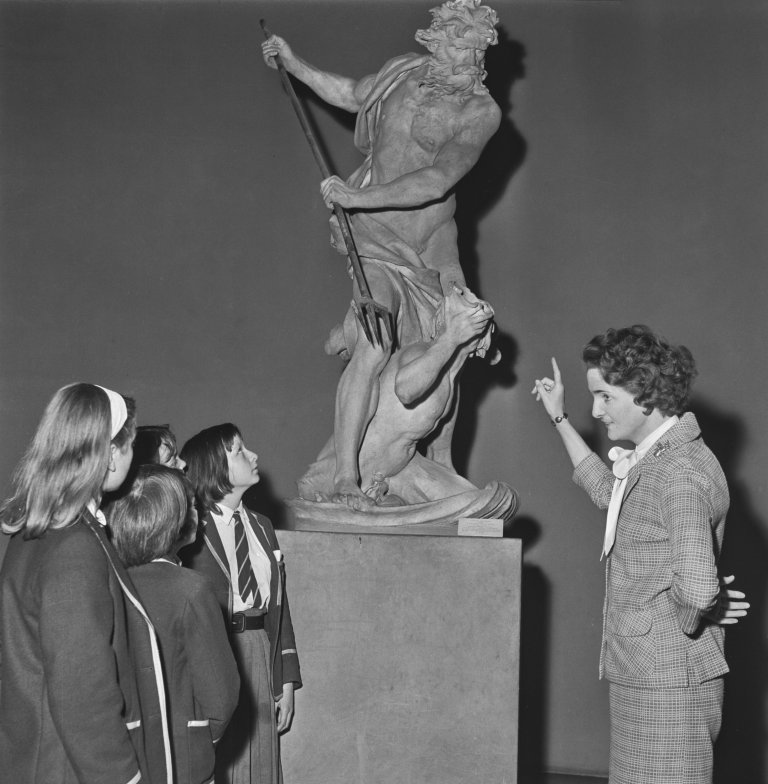 Показват статуята „Нептун и Тритон“ от Джан Лоренцо Бернини на ученици по време на посещение в музея Виктория и Албърт в Лондон, Великобритания, 8 октомври 1965 г. Снимка: Getty Images
