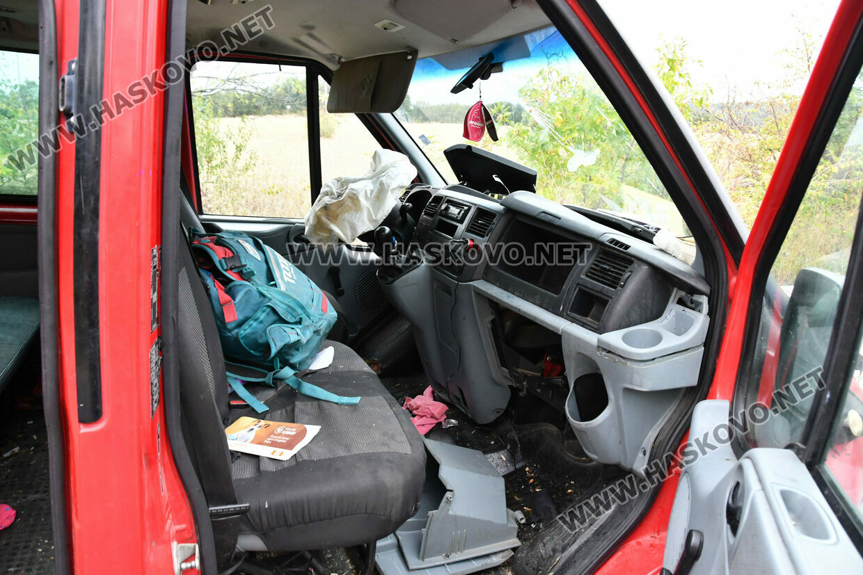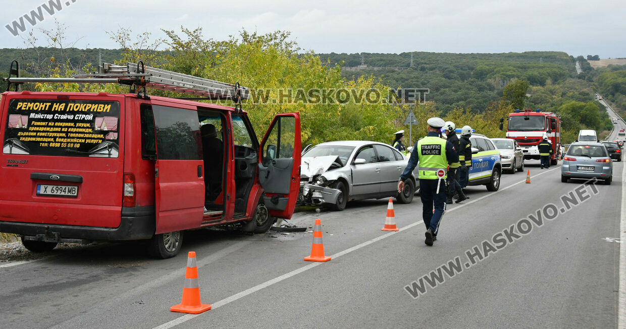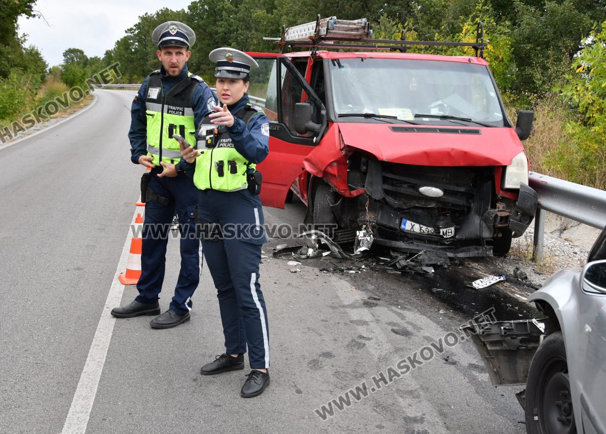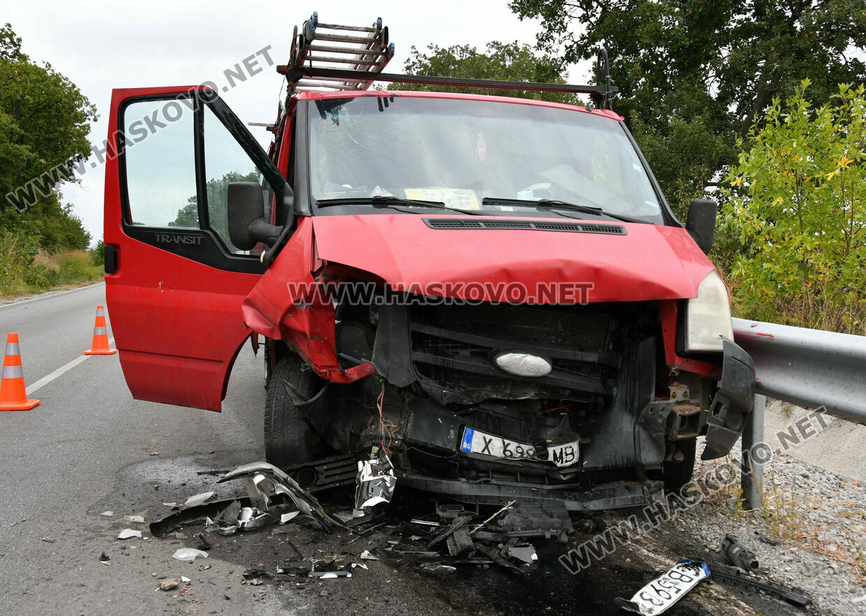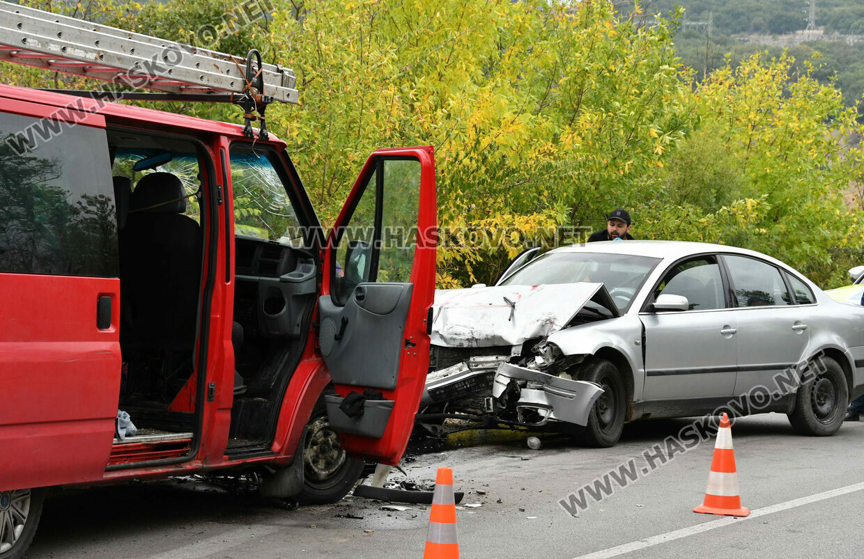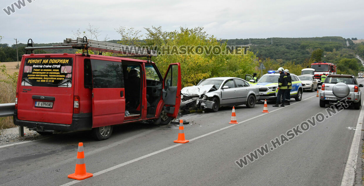 Ударът е между микробус с трима мъже от село Александрово, който е навлязъл в насрещната лента за движение и челно се е блъснал в идващия отсреща лек автомобил „Фолксваген“, в който пътували двама молдовци. Двамата чужденци са откарани с линейка в хасковската болница. По първоначална информация, единият е със счупен крак.