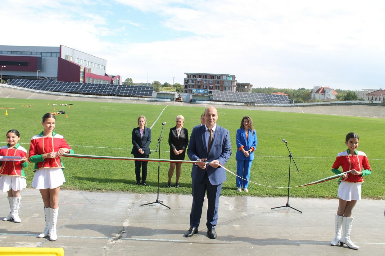 Това е един от най-мащабните проекти за подобряване на спортната инфраструктура, който общината изпълни на три етапа успешно само за една година. В спортното съоръжение, строено през 50-те години на миналия век, бяха приложени уникални архитектурни решения за вентилация и изолация на конструкцията, както и монтиране на фотоволтаични панели върху козирките за собствена електроенергия.