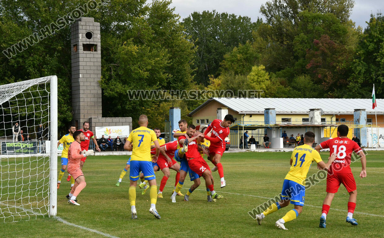 Регионалното дерби в Трета футболна лига между отборите на Димитровград и Хасково не успя да излъчи победител. Двата отбора направиха корав сблъсък на стадион „Миньор“ в Димитровград, създадоха положения и пред двете врати, но така и не стигнаха до гол.