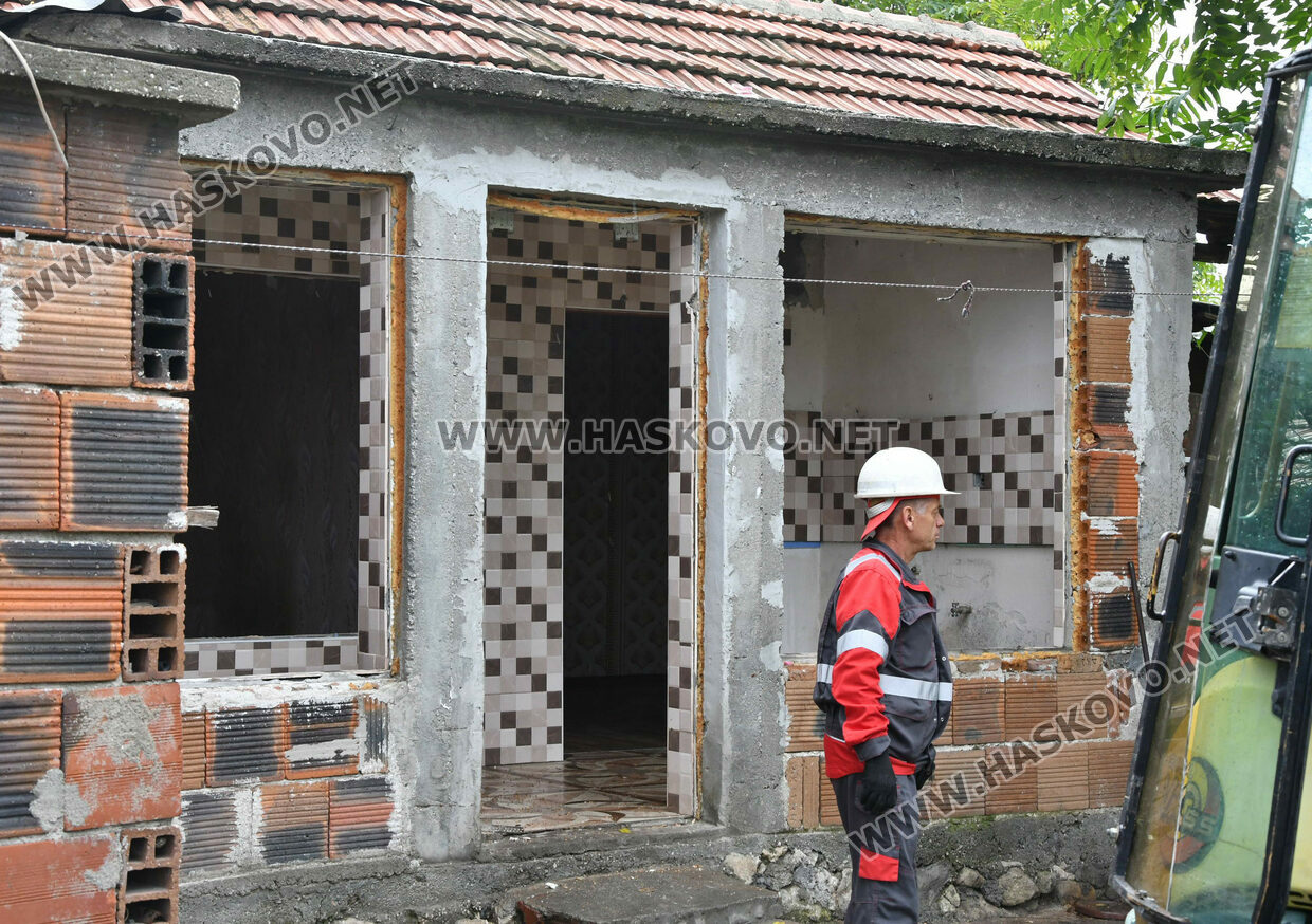 Разрушаването на незаконни имоти започна от хасковския квартал „Република“. Акцията стартира тази сутрин от къща на улица „Лютиброд“ 7, намираща се край дерето. Имотът е бил обитаван от 5-членно семейство – мъж, жена и трите им деца на 14, 17 и 18 години. Те бяха изнесли покъщнината си на улицата, в калта.