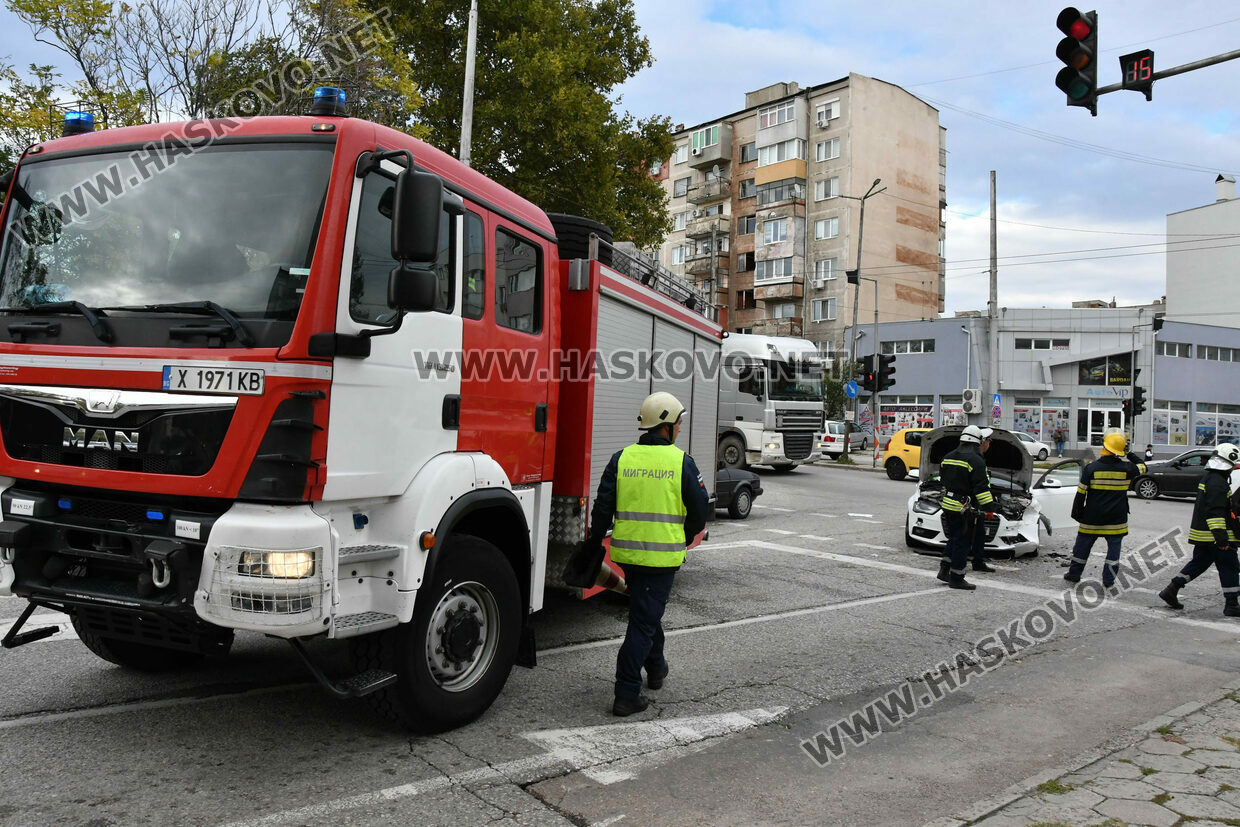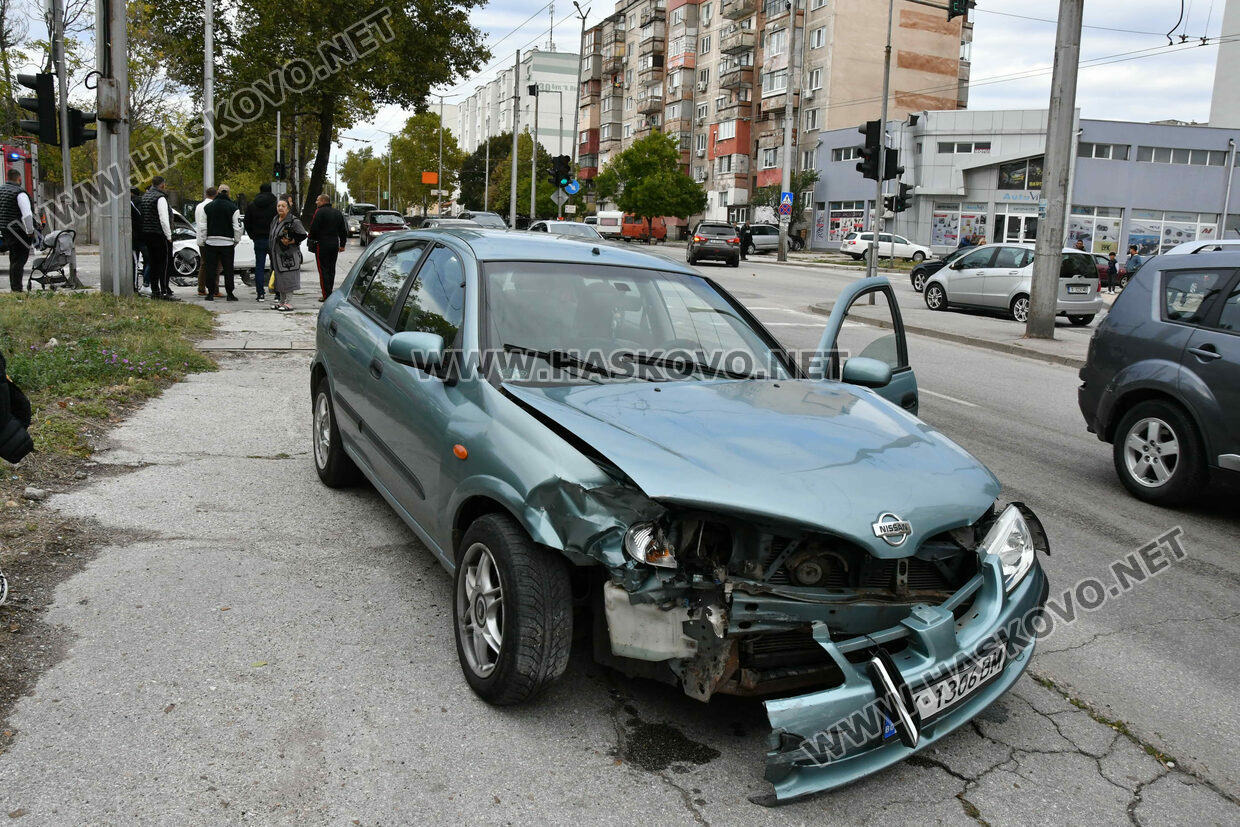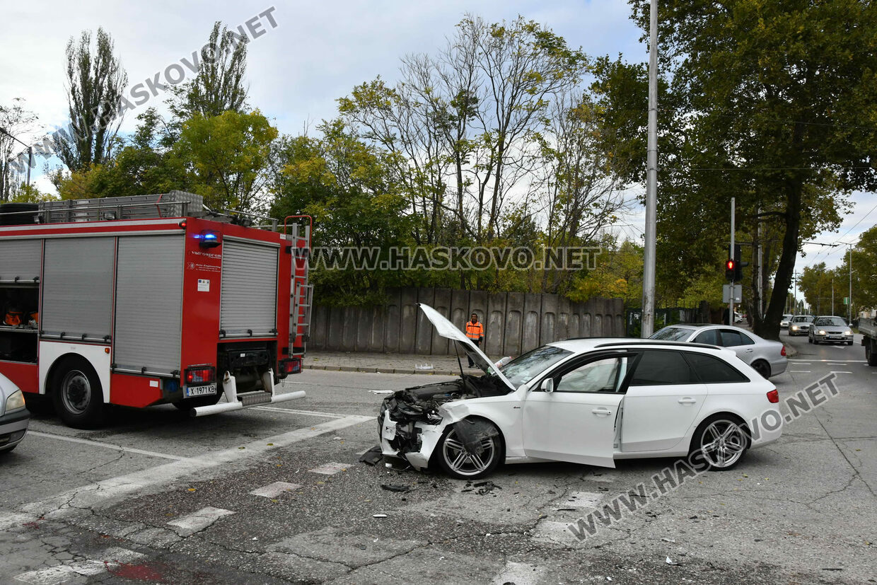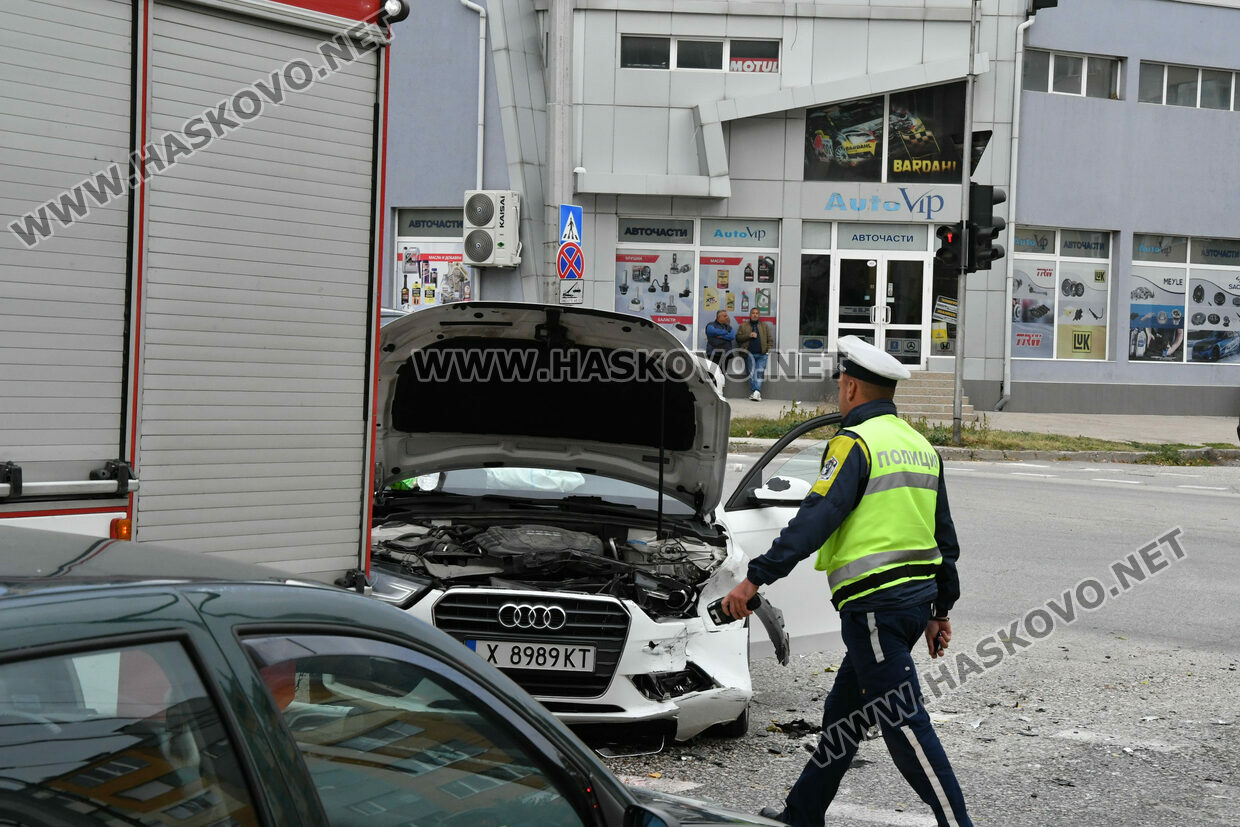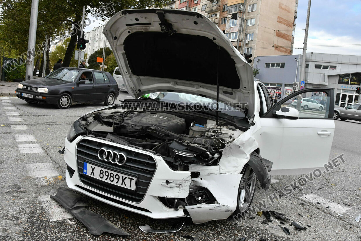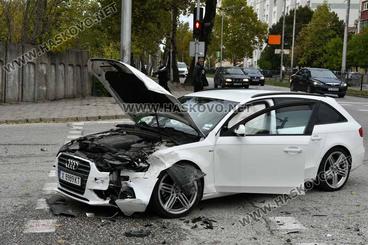 Ударът е между лек автомобил „Ауди“, шофиран от 24-годишна хасковлийка и лек автомобил „Нисан“ с кърджалийска регистрация, шофиран от 70-годишен хасковлия. По първоначална информация, „Аудито“ идвало откъм „Орфей“ и се е движело направо по булеварда. Шофьорът на „Нисана“ се е движел по булеварда към „Орфей“ и на кръстовището с улица „Дунав“ е тръгнал да прави обратен завой, при което е последвал сблъсък.