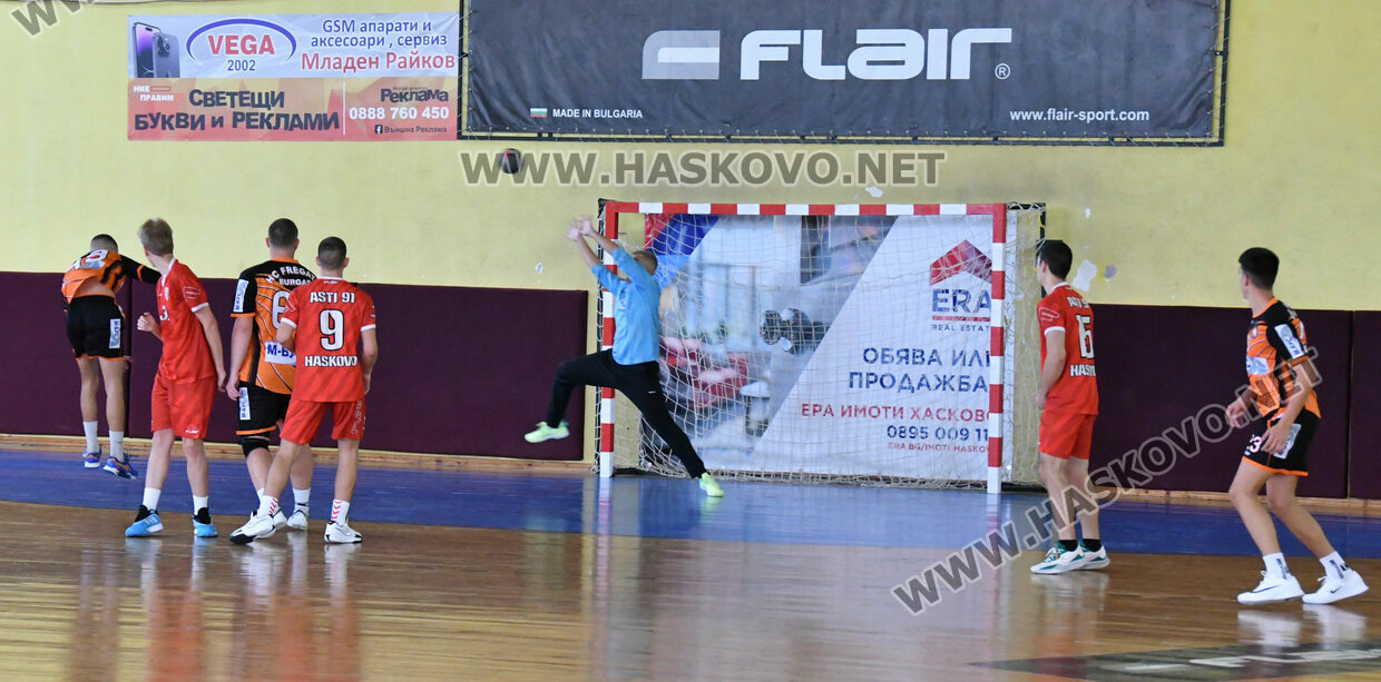 Двубоят между „Асти ‘91“ и „Фрегата“ започна резултатно. И двата отбора бележеха, но гостите постепенно натрупаха лек аванс. Хасковлии успяха да изравнят при 5:5. След което и поведоха. Домакините обърнаха нещата в своя полза и на полувремето водеха с 20:11. До края на срещата хасковлии не изпуснаха инициативата и спечелиха с 39:20.