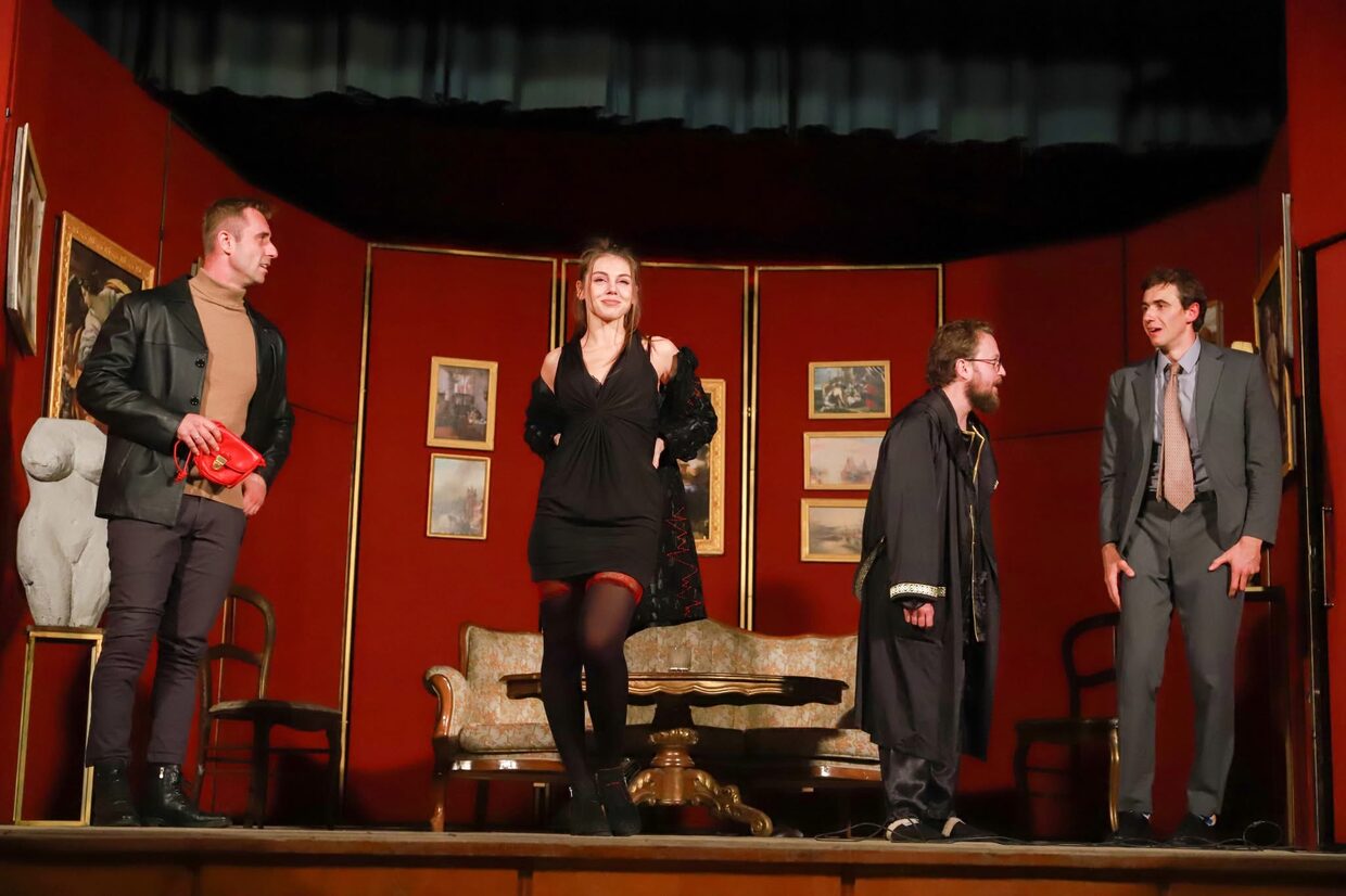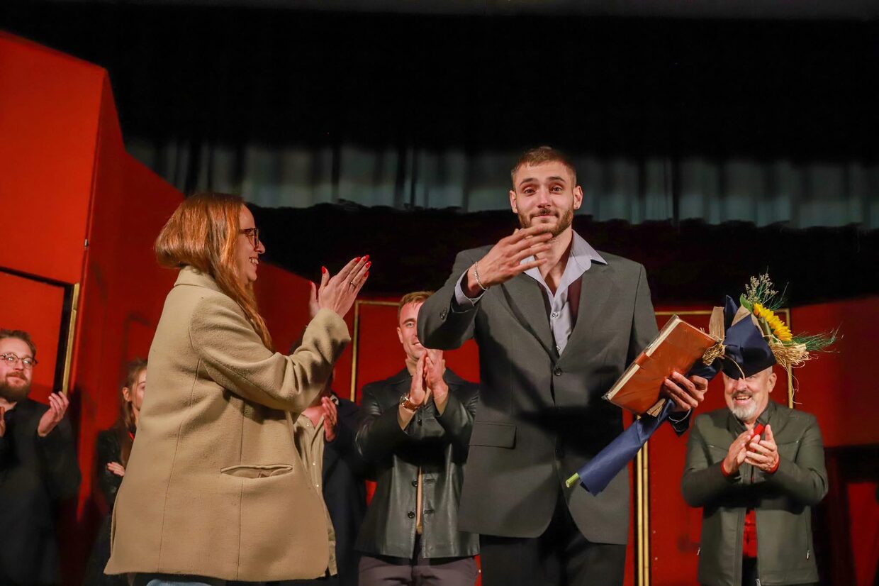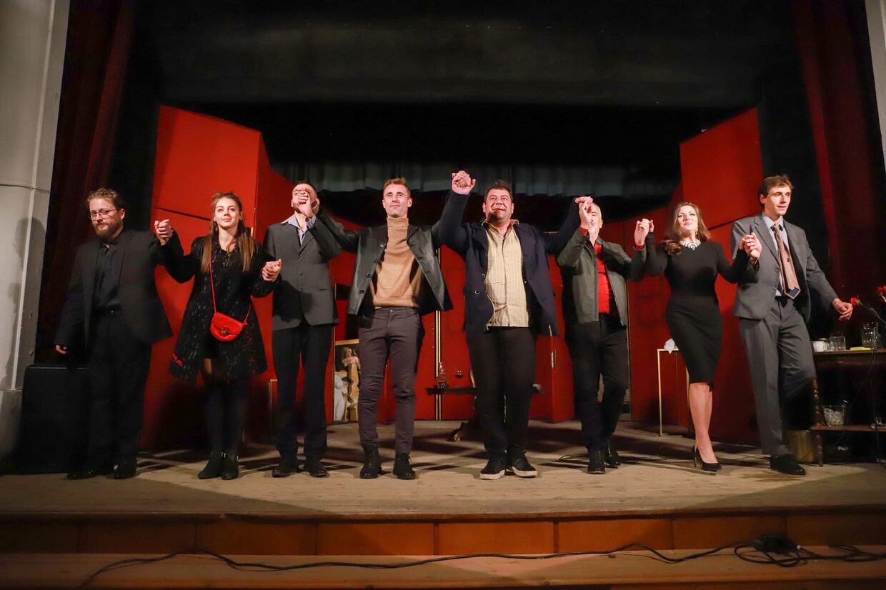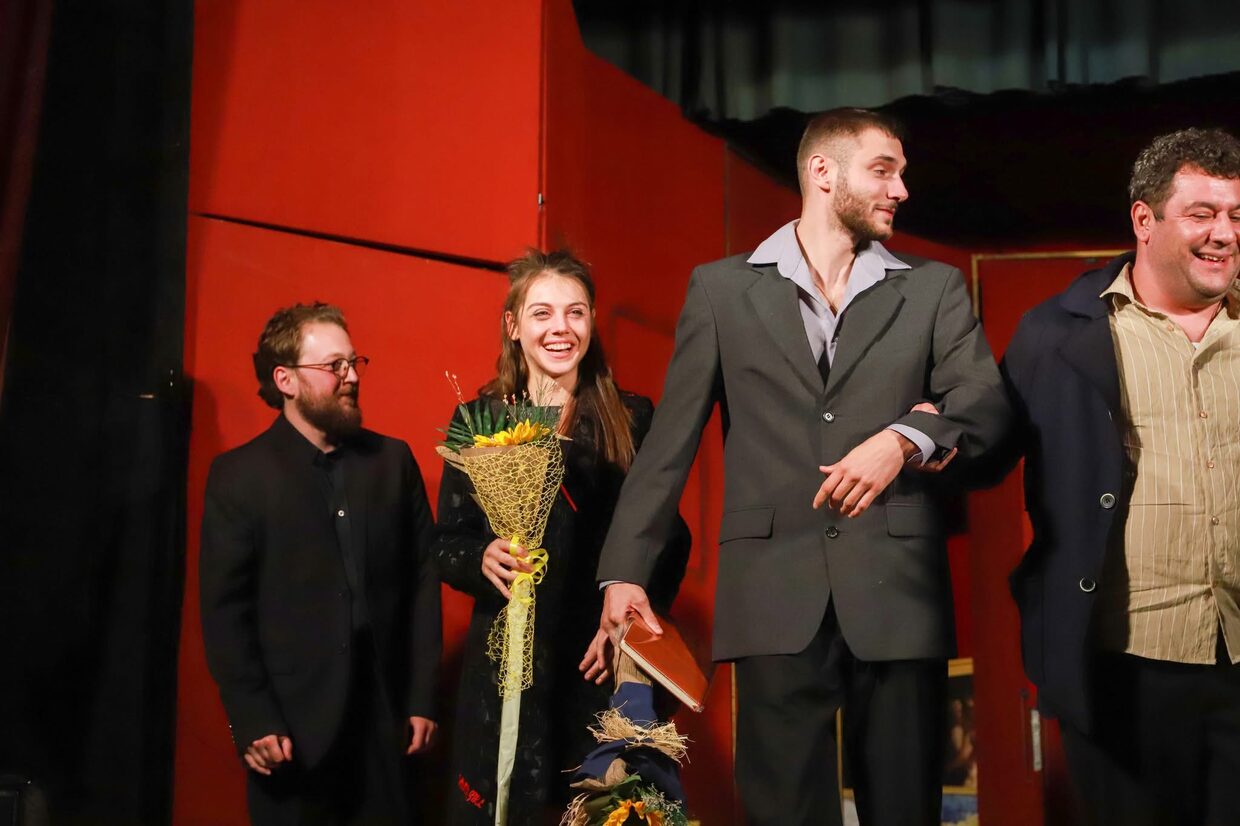 С играта си актьорите от хасковската трупа заслужиха бурни аплодисменти, а дамите и на сцената и букети цветя.