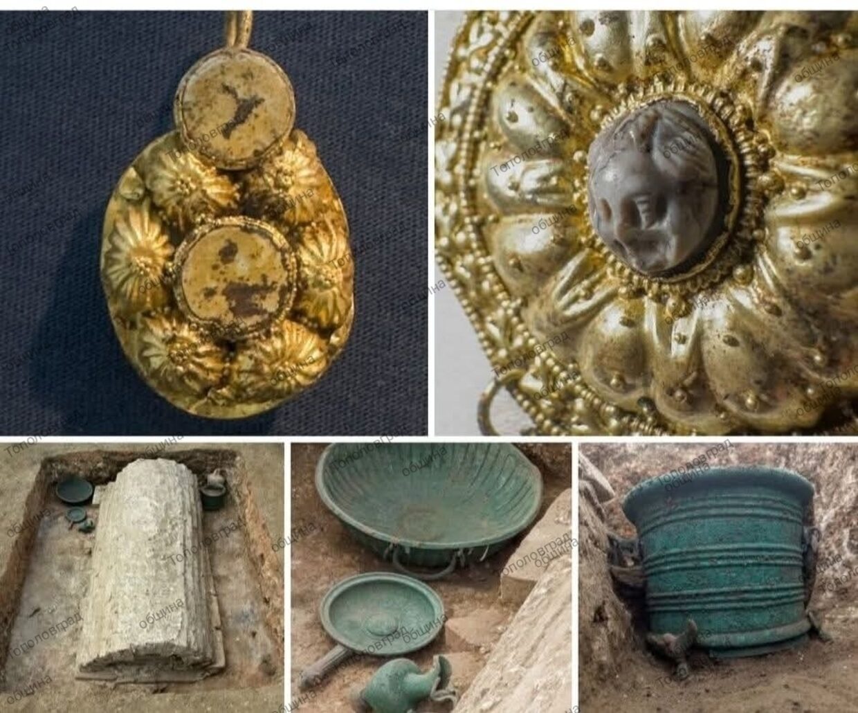 Сред уникалните находки се открояват: Масивни златни обеци, Полусферични златни апликации, открити в областта на главата, Златна аграфа-брошка с релефно женско изображение (камея) – изключителна по своето изящество, без аналог у нас. Подобен накит е познат от погребението на Креперия Трифена в Рим, което говори за високия социален статус на погребаната.