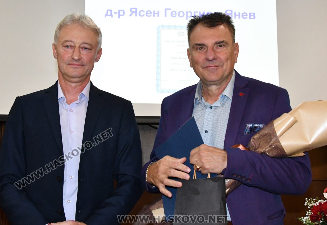 В емоционално слово д-р Ясен Янев благодари за отличието. Той пожела на колегите си да се върнат златните времена на здравеопазването в Хасково, когато от София са връщали пациентите обратно в Хасково, „защото там разполагате с най-добрите специалисти“.