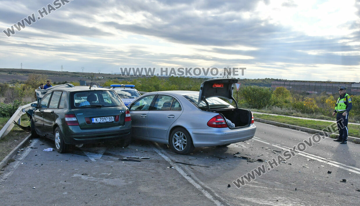 Водач на лек автомобил „Фиат-Стило“ с кърджалийска регистрация, пътуващ в посока към Узунджово прави ляв завой към пътя за Пловдив и отнемайки предимството на „Мерцедес“ с хасковска регистрация, пътуващ към Хасково го удря почти челно в левия калник.
