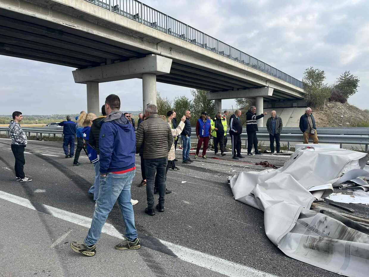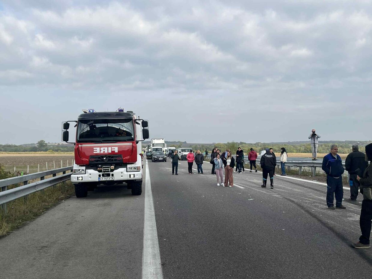 Заради произшествието пътят бе затворен и се преминаваше през обходен маршрут. В платното имаше километрична опашка от чакащи леки автомобили и камиони.
