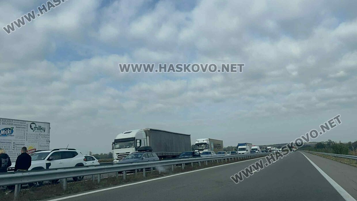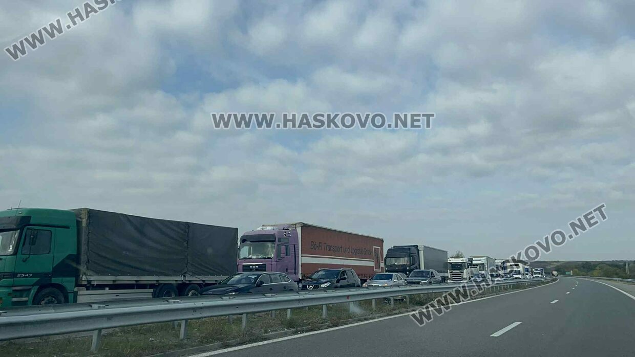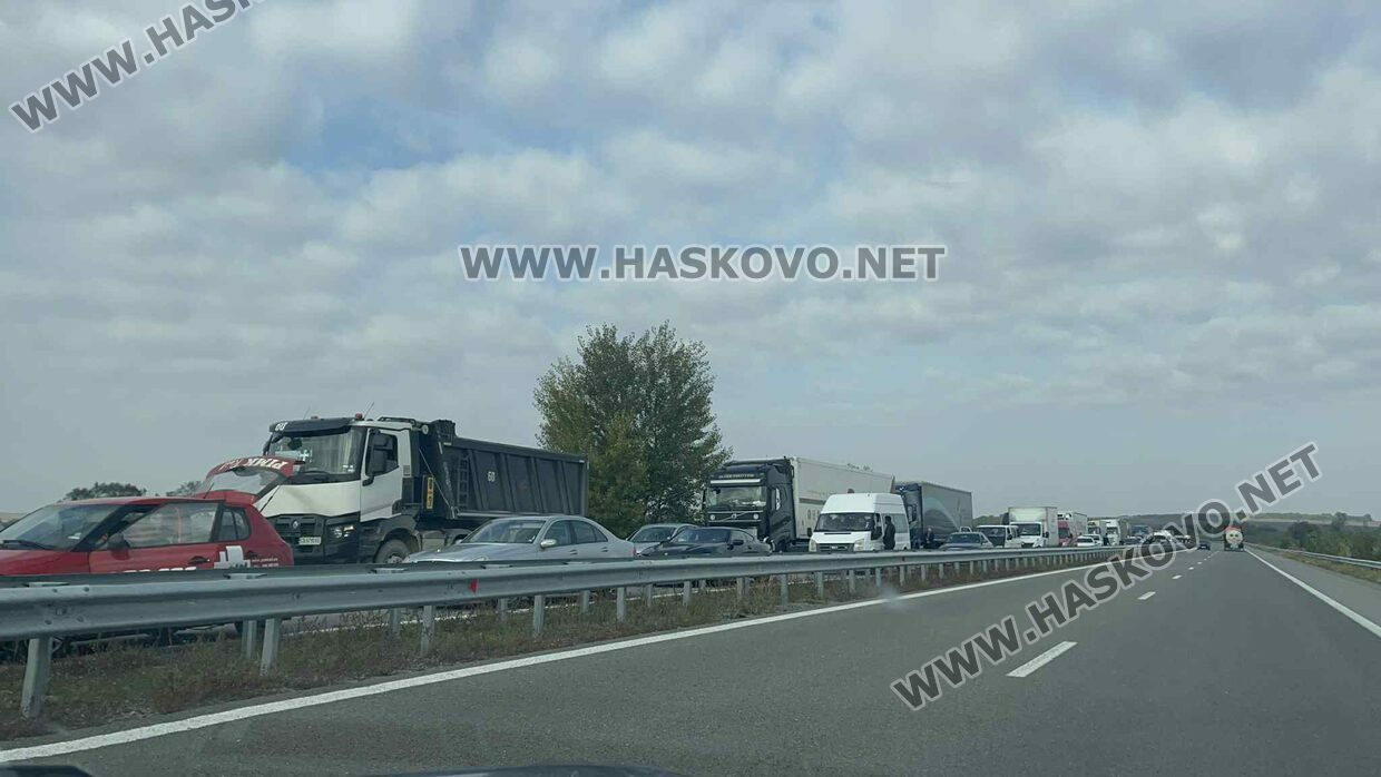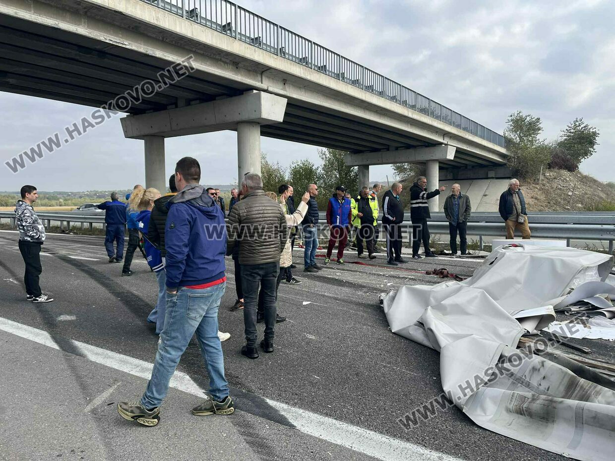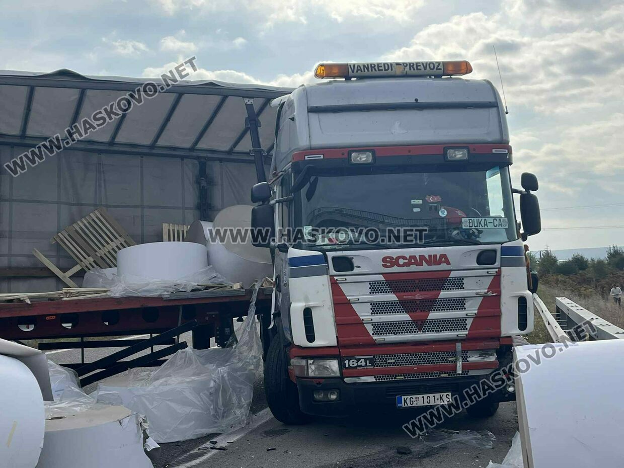 Тир, натоварен с тоалетна хартия, катастрофира и затвори автомагистрала „Марица“ в Хасковска област. Инцидентът стана около 8:20 часа при 23-и километър в платното в посока към Свиленград.