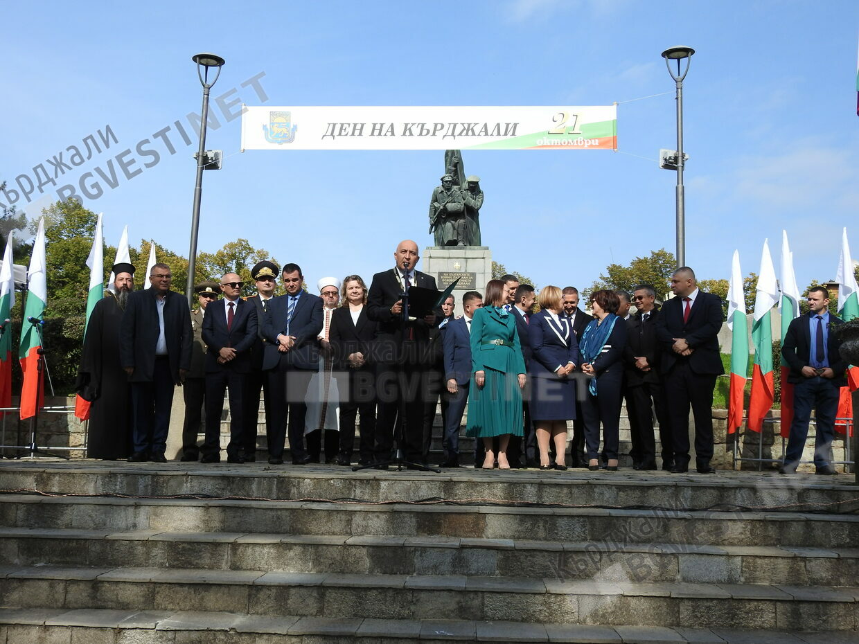 Градоначалникът Ерол Мюмюн отбеляза в словото си,че на тази дата преди 113 г. Кърджали е тръгнал по нов път,път на свобода и развитие. В момента дава пример на цяла България.Пример сме на толерантност и мирно съжителство,подчерта градоначалника. Той посочи,че дълг на кърджалийци е не само да пазят постигнатото, но и да добавят своето. Можем да бъдем пример за иновации,развитие и култура,посочи Ерол Мюмюн. Той отбеляза, че последните две години са доказателство за това. Града се обновява с часове. Изобилстват фестивали и програми. Това е само Начало. Работим Кърджали да бъде град на бъдещето.Настъпва промяна в духа ни.Усещам вашата подкрепа и доверие,отбеляза още градоначалника.Той каза още,че винаги ще бъде до кърджалийци и ще чувства всеки,който е част от общата мисия. Това е вдъхновяващо за всички.Нека бъдещето на Кърджали бъде толкова светло,колкото е славно неговото минало, заключи ораторът.