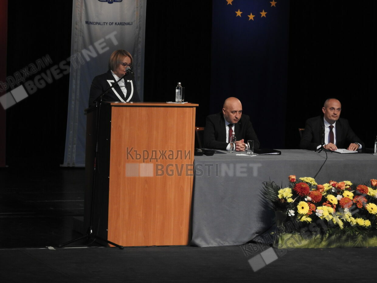 Председателят на Народното събрание доц.др Наталия Киселова отправи приветствие към присъстващите общински съветници и гости.Тя каза,че Кърджали е пример за успехи,когато не се делим по вяра и етнос.Време е да покажем,че помним историята ,посочи Наталия Киселова.Кърджалийци са пример как се гради и пази държавността,каза още председателката на парламента.