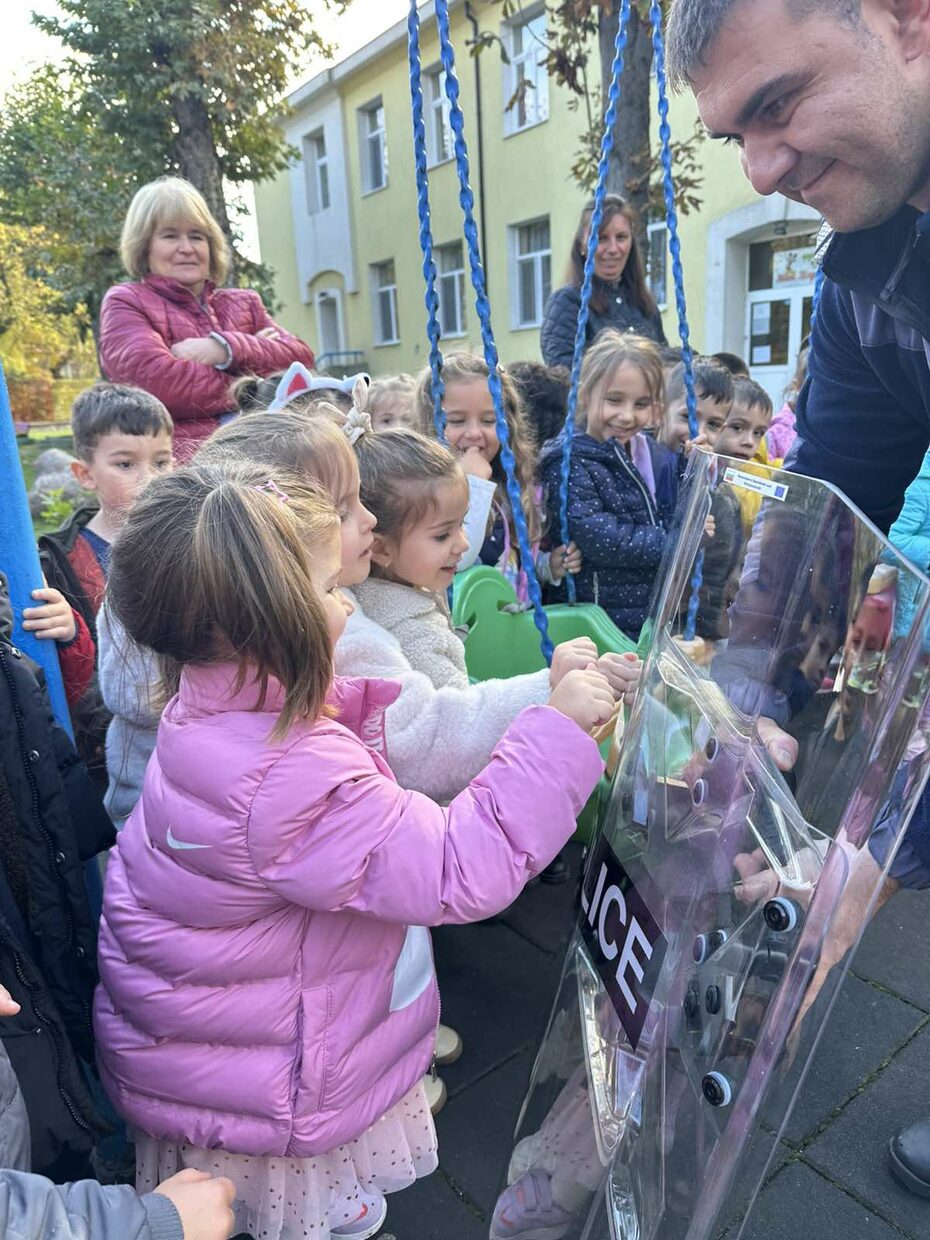 С възторг малчуганите посрещнаха полицейското куче Чипи водачите му Генади Иванов и Димитър Станев, които разказаха как използват в своята работа двегодишната белгийска овчарка. Демонстрирани бяха и основните команди, които изпълнява четириногият помощник на полицаите. Старши инспектор Алекс Кърбашев от РУ-Кърджали разказа каква е работата на полицаите и показа на децата полицейското оборудване – защитна каска, щит, щурмова палка, таблет и принтер, радиостанция. Последва демонстрация на задържане на нарушител. Възпитаниците на детската градина научиха, че при включване на светлинни и звукови сигнали на полицейския автомобил всички трябва да му направят път, защото е в спешен режим на работа. В демонстрациите участваха и полицаите Ралица Хаджиева, Калия Гърбева и Мариян Гълбачев от управлението в Кърджали.