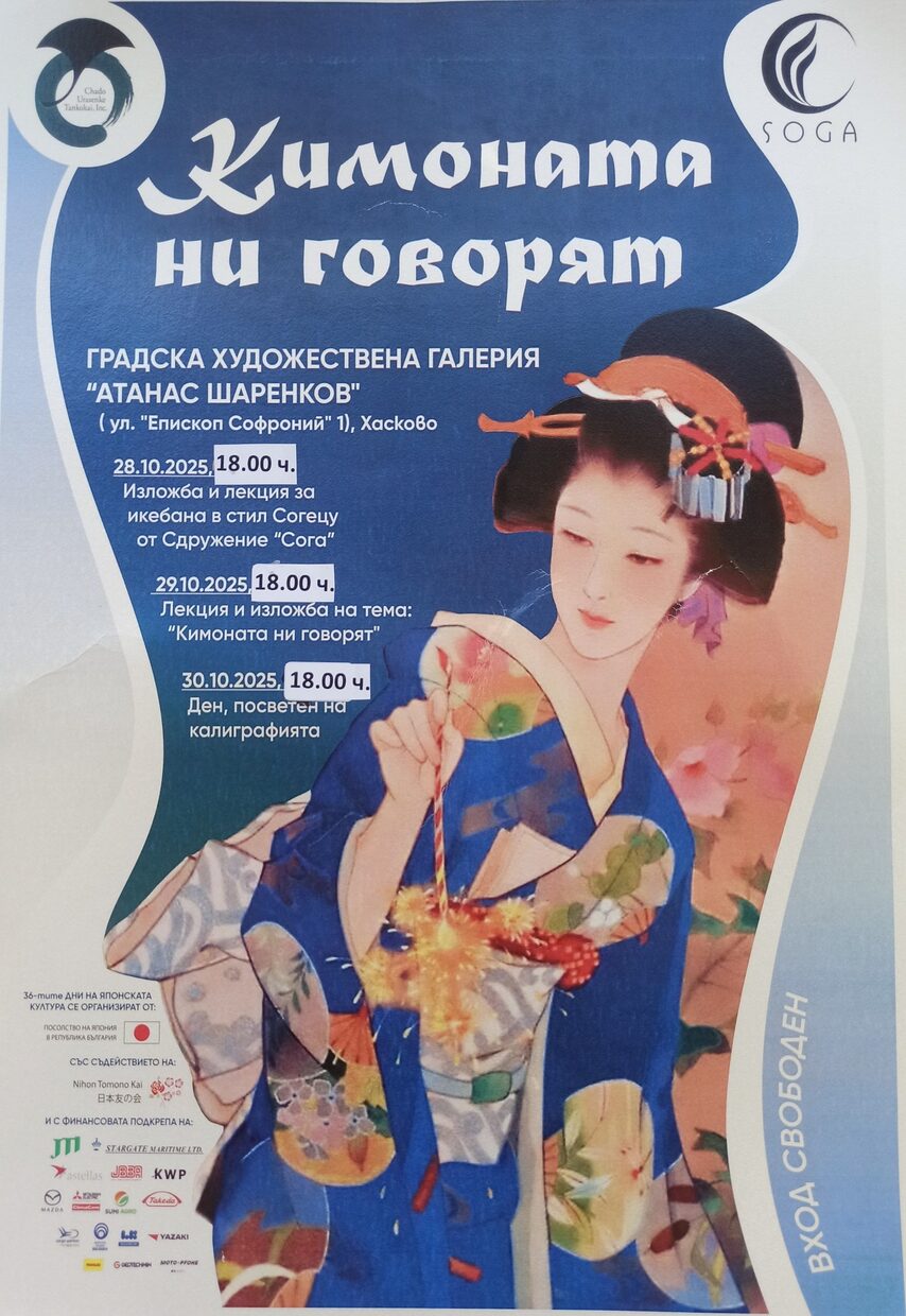 За да се насладите на цветните композиции от кимона, да разгадаете магическите послания на икебана или майстор-калиграф да изпише Вашето има на японски, посетете Дните на японската култура в Хасково.