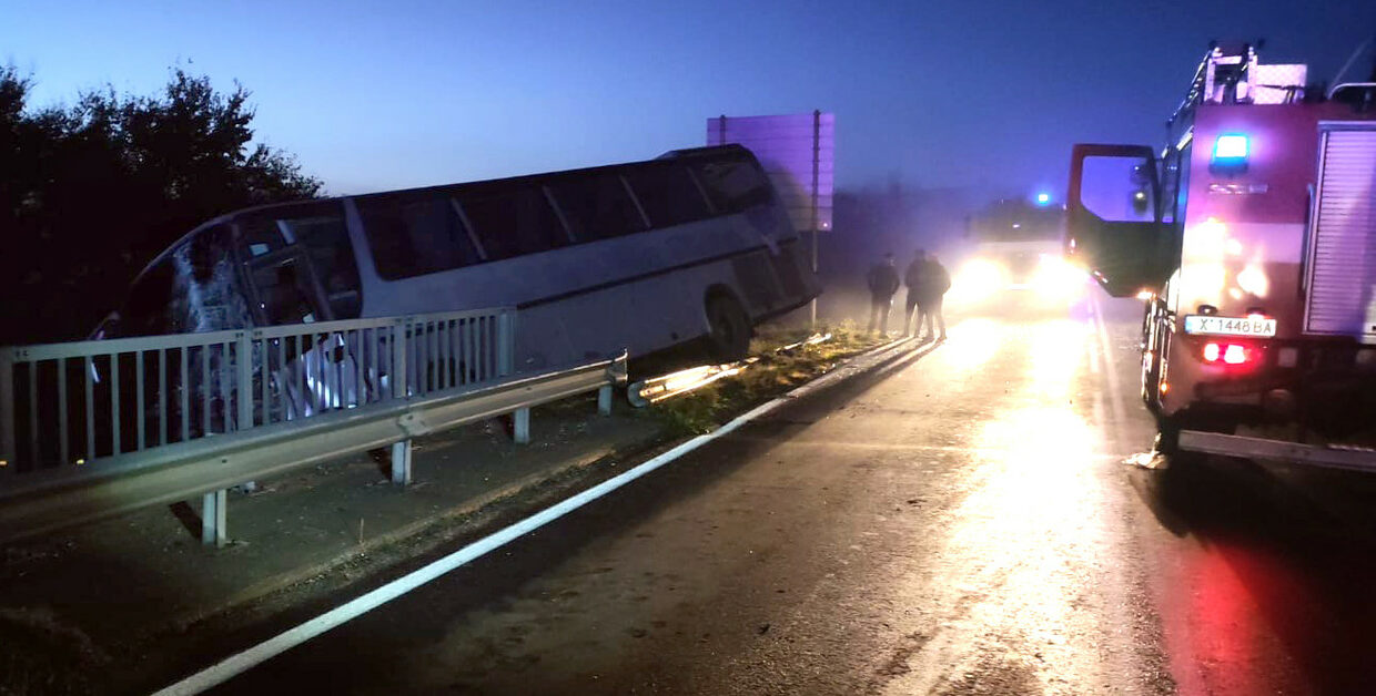 Автобус, превозващ 14 работници на Мини „Марица Изток“ надвисна над дере, след като бе засечен и се удари в тир на пътя Симеоновград – Харманли. Катастрофата стана малко след 17 часа днес на завой преди изхода за магистрала „Марица“ в Хасковска област.