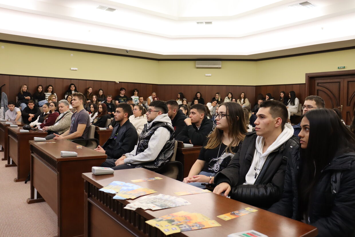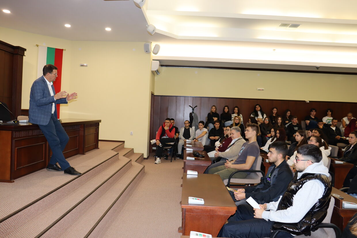 Бъдещите икономисти проявиха интерес към формирането и приемането на общинския бюджет, реализацията и финансирането на най-значимите проекти в Хасково и възможностите за справяне с някои от сериозните проблеми на съвременните градове като трафика, обществения транспорт и екологията.