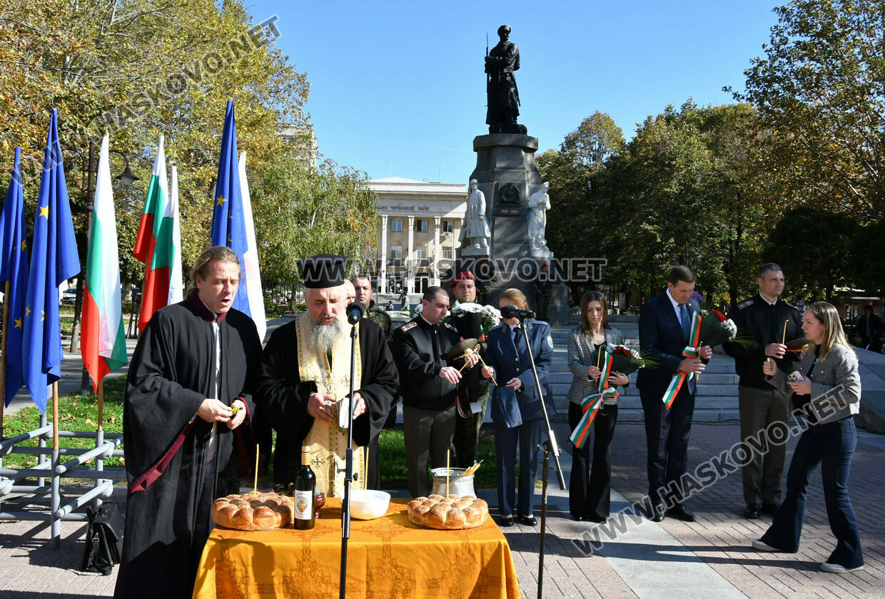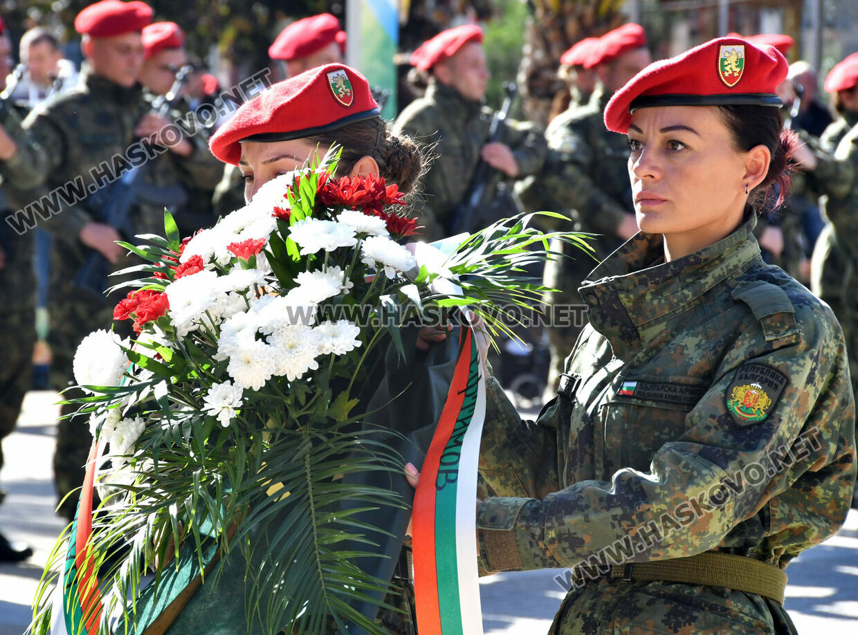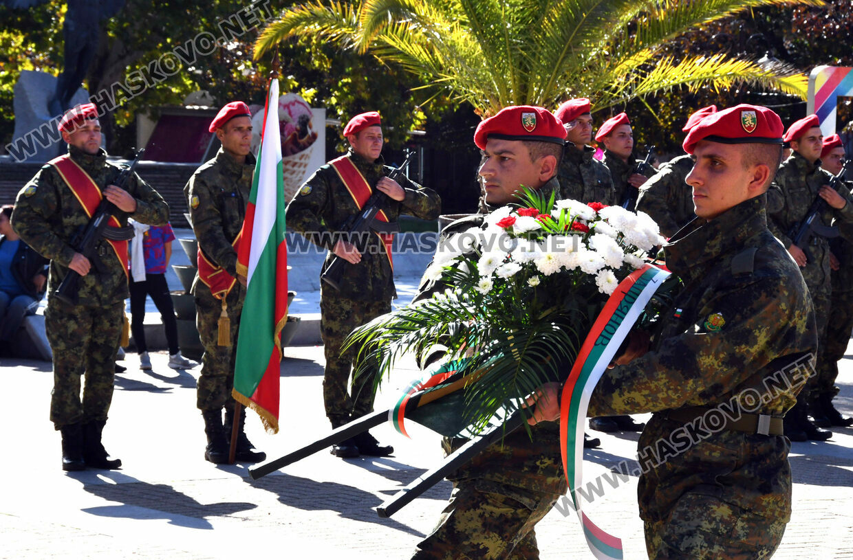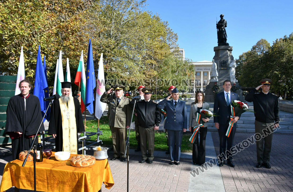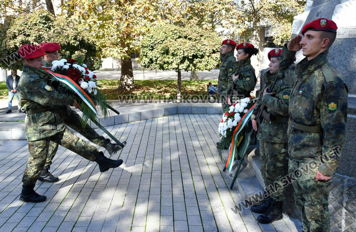 Цветя пред паметника на Незнайния воин поднесоха областният управител на Хасково д-р Стефка Здравкова и кметът на Хасково Станислав Дечев.