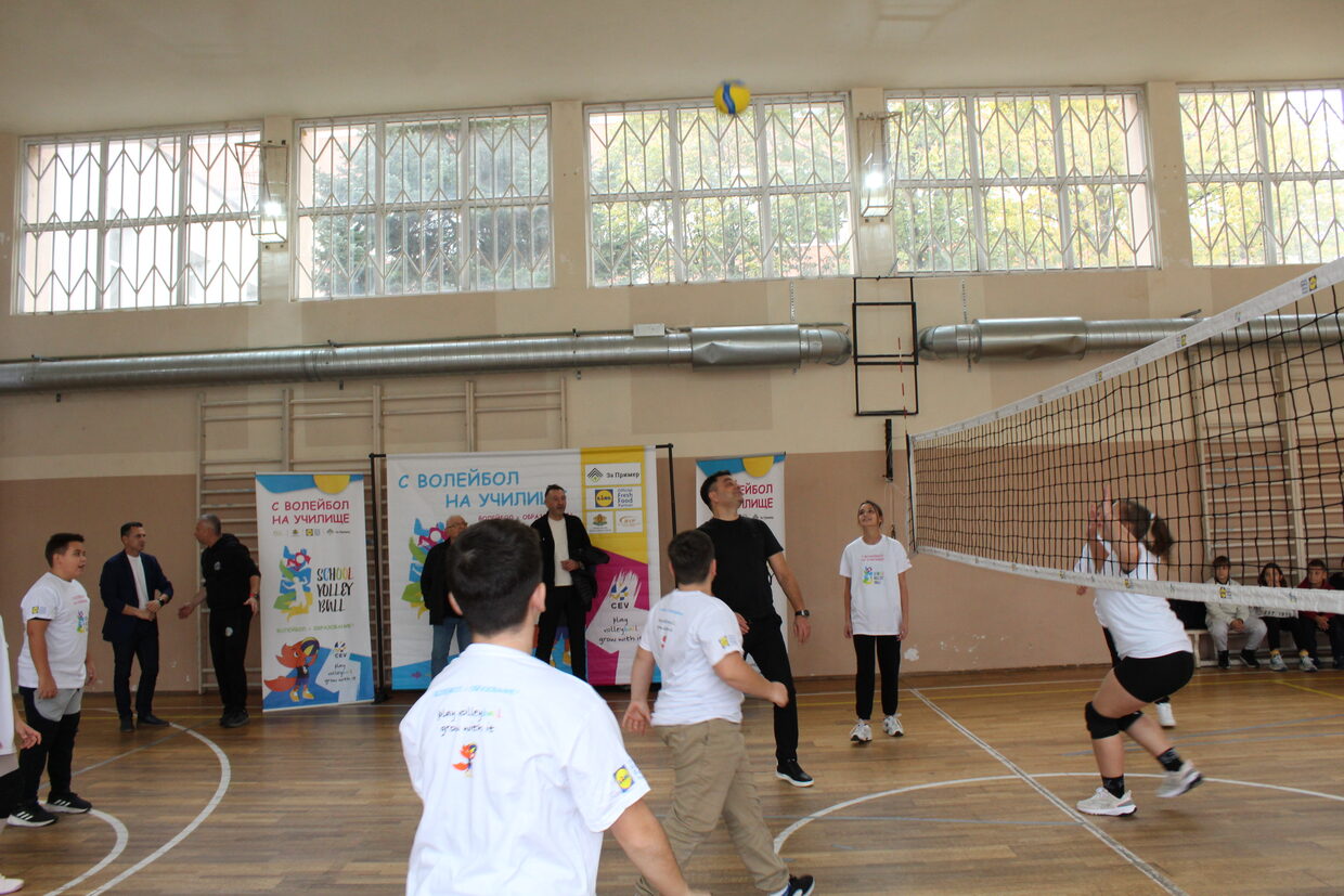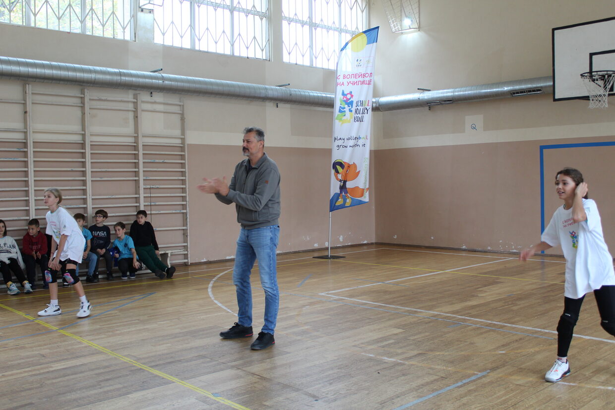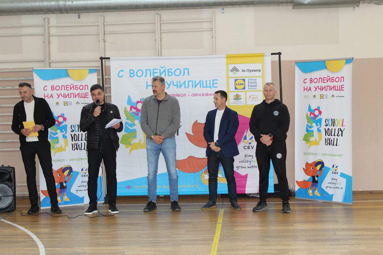 Домакините от екипа на училището, в лицето на учителя по физическо Велислав Станимиров, зам.директора Никола Вълчанов и директора Мария Янева, подкрепят идеята на федерацията за новите методики за ранно обучение и развитие на подрастващите. Допълнителен блясък на събитието предадоха изпълненията на мажоретния състав с ръководител Миглена Бинева, както и трогващото изпълнение на гайдаря Теодор Борисов от 6А, който също тренира волейбол в отбора на училището. В проведеният волейболен мач във физкултурния салон на училището, по покана на децата, активно се включиха и кметът на общината Иво Димов и главният координатор на националните ни отбори Николай Иванов.