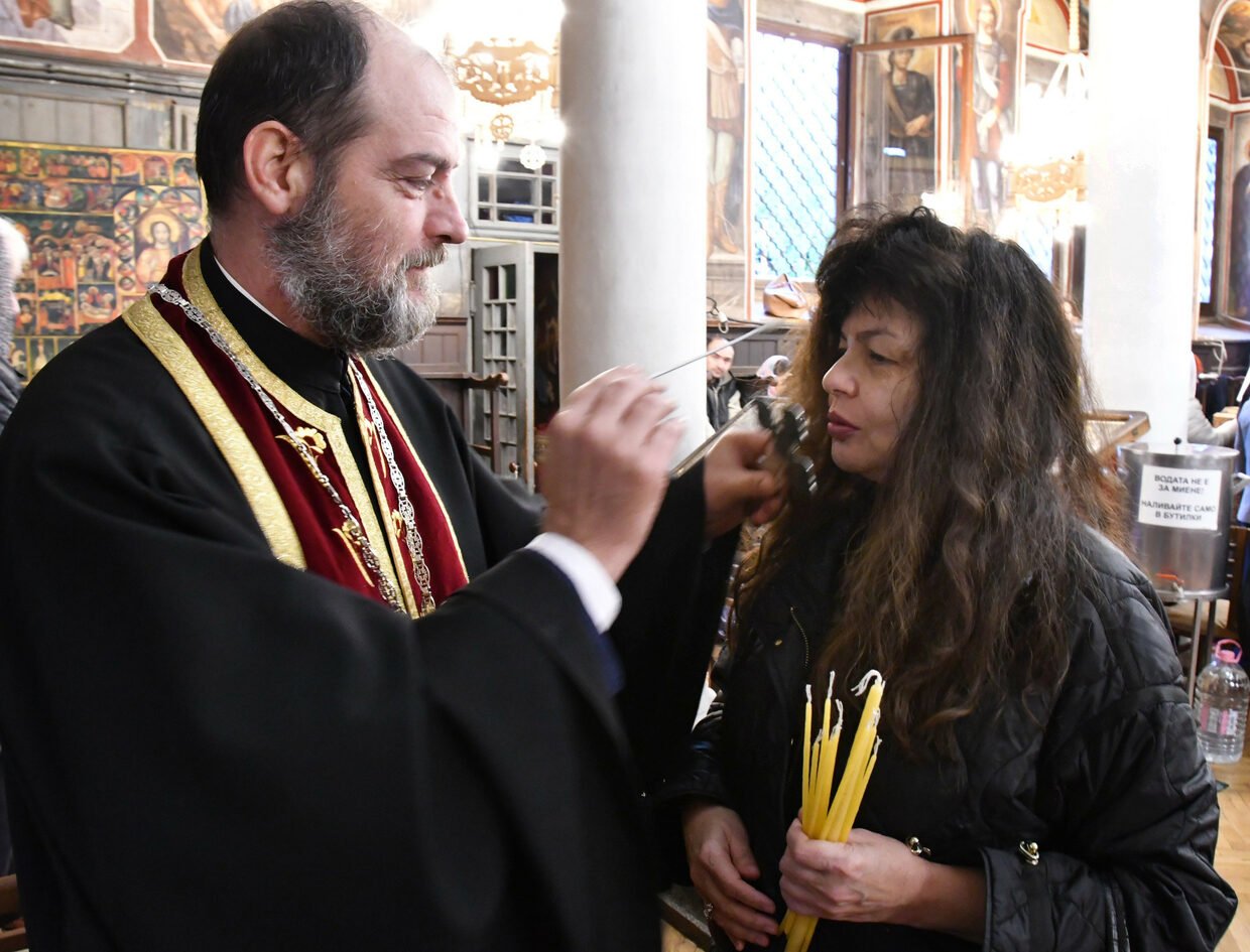 Тържествената литургия се водеше от синовете на отец Златко - Кирил и Константин, а отец Никола извършваше ритуала "Помазване" на входа на църквата.