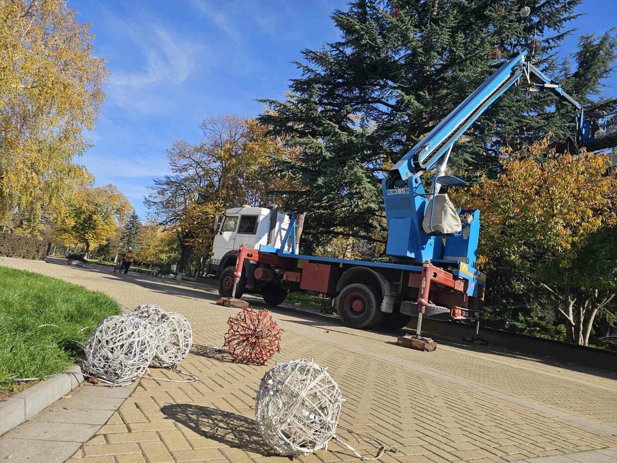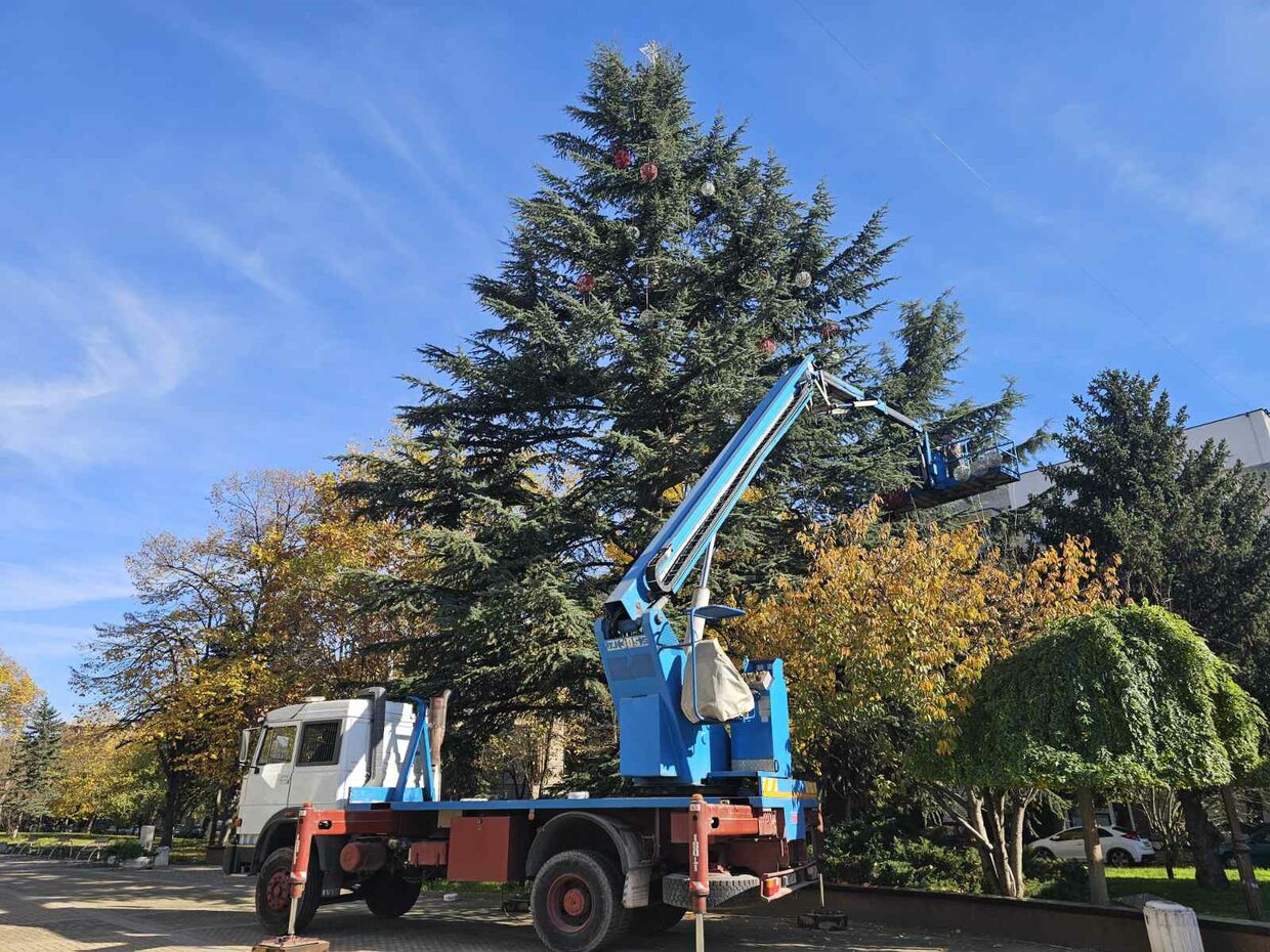 Усилено тече профилактиката на осветлението на най-голямото живо Коледно дърво в Европа, което се намира на централния площад в Димитровград и цялата коледна украса в града.