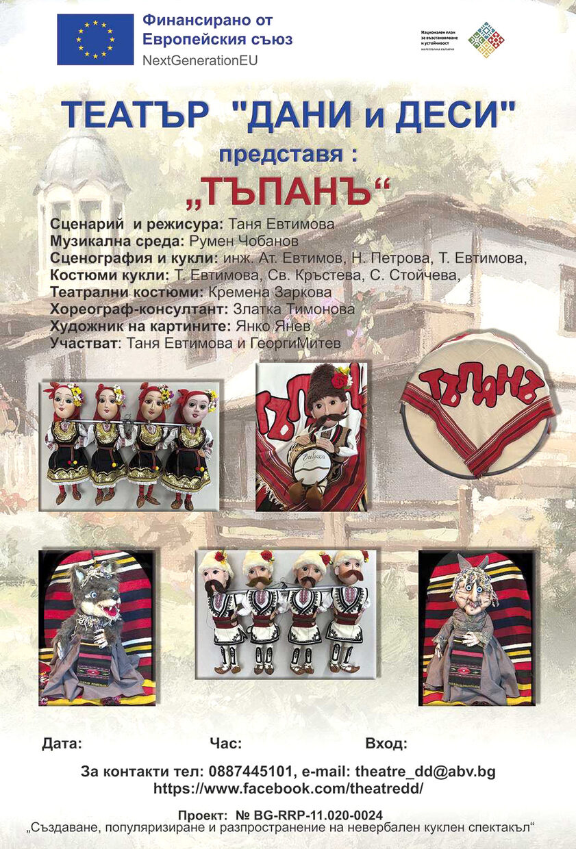 С голямо национално турне хасковският Театър „Дани и Деси“ отбелязва 30 години от създаването си. Трупата е подготвила спектакъла „Тъпанъ“, реализиран по проекта „Създаване, популяризиране и разпространение на невербален куклен спектакъл“, финансиран от Европейския съюз по програма Национален план за възстановяване и устойчивост. Безвъзмездната помощ е за създаване на български продукции и копродукции в сектора на културните и творческите индустрии и промотирането им на европейските и международни пазари за изкуства.