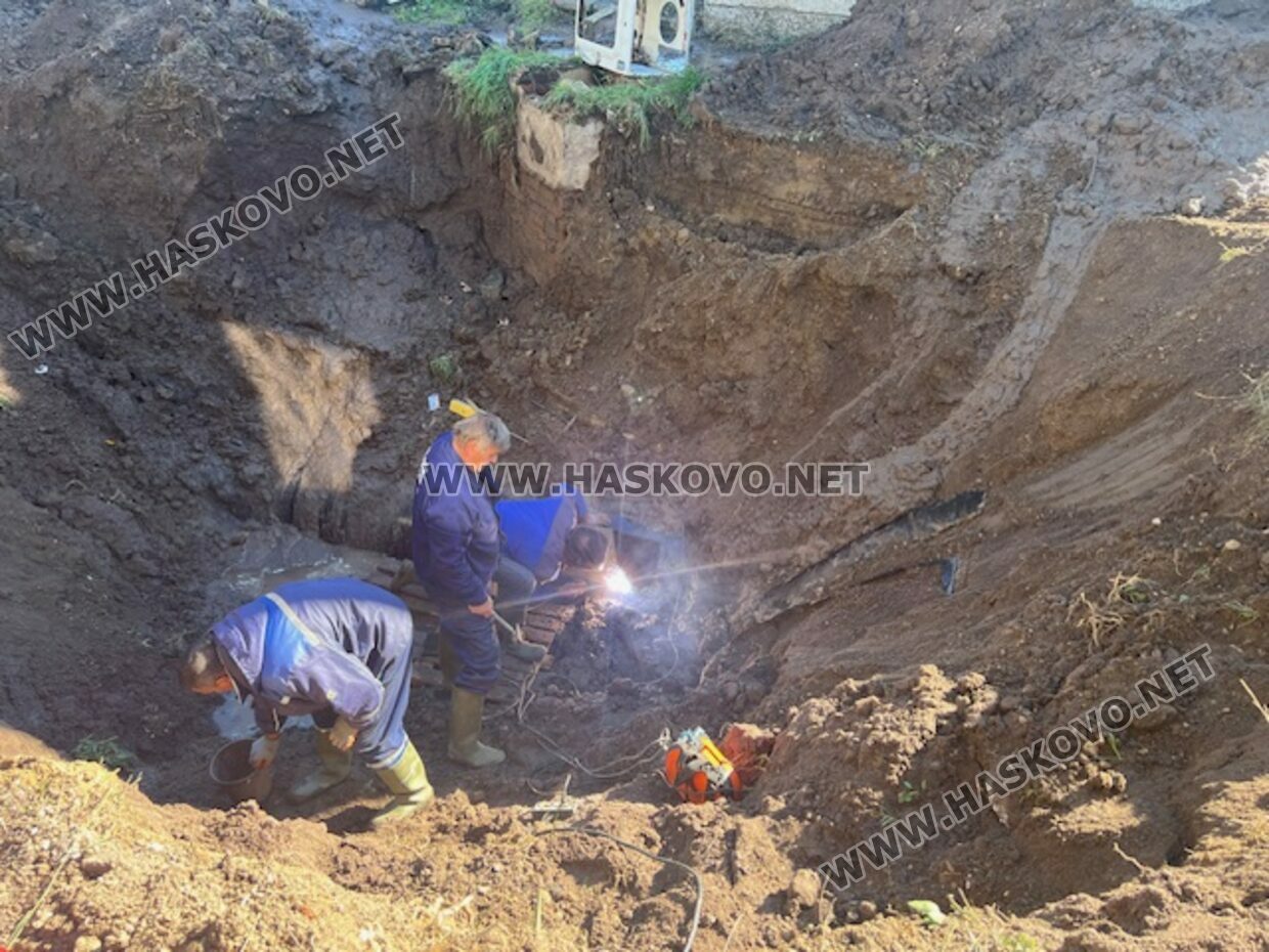 Изкопът е до самата сграда на помпената станция. Само заварките по тръбата ще отнемат 4 часа. Очаква се повредата да бъде отстранена до края на деня. Възможно е северната част на Хасково, където са и най-населените квартали с блокове като "Орфей", "Куба", "Бадема" и "Дружба" 1,2 и 3 да бъдат без вода или с нарушено водоподаване.