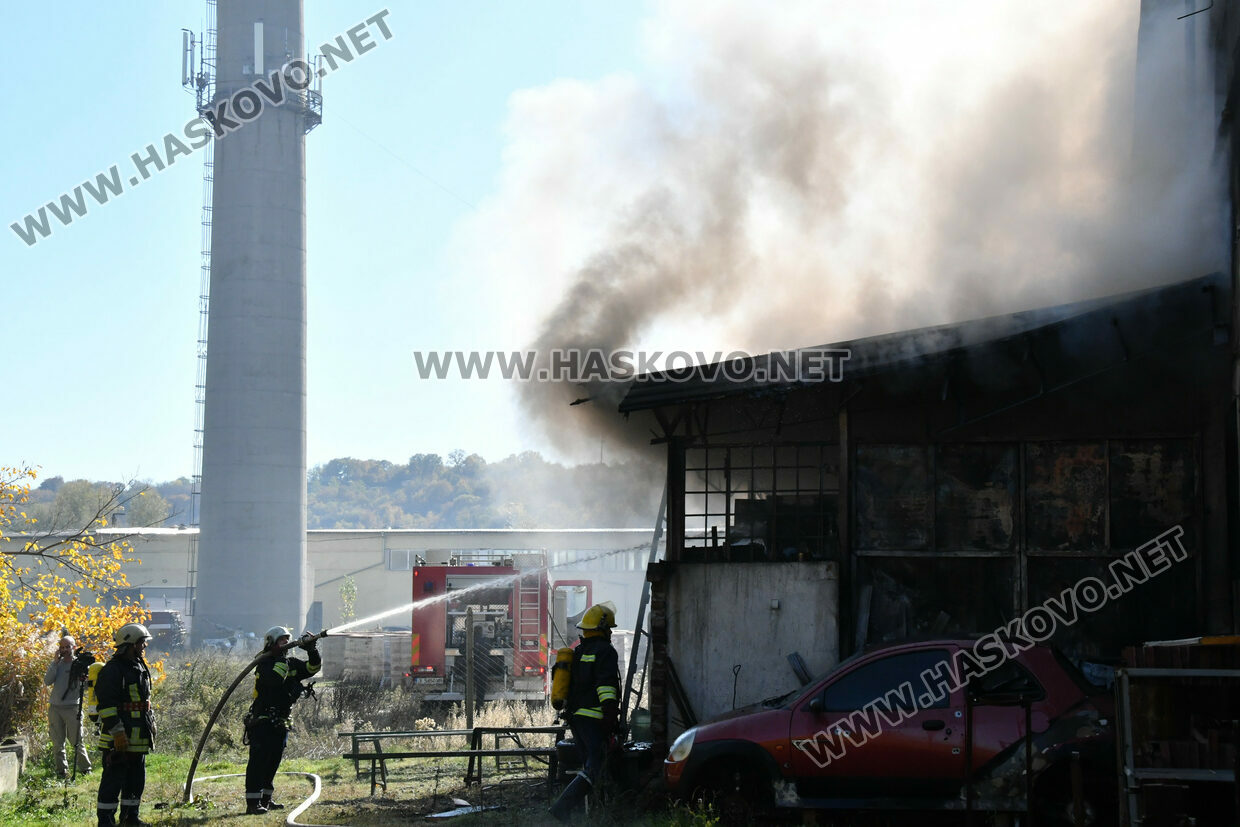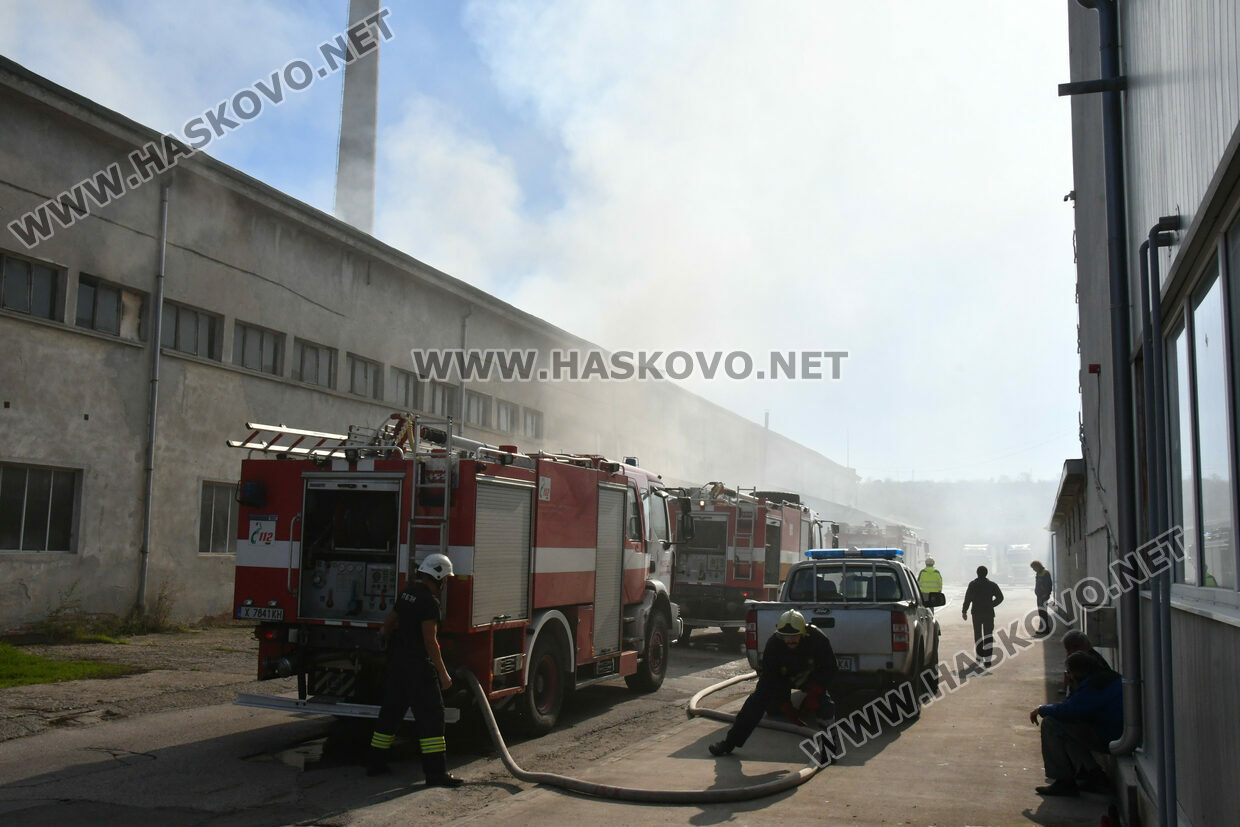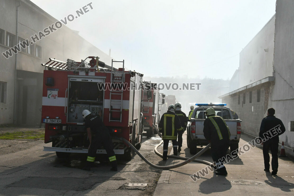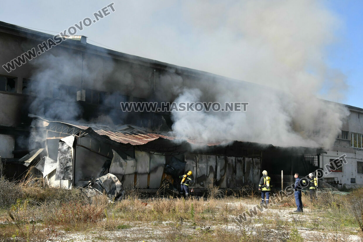 Голям пожар избухна днес по обед в бившия завод „Млада гвардия“ в Хасково. Според неофициална информация огънят е тръгнал от електрическа скара, на която работници са си приготвяли обяд.