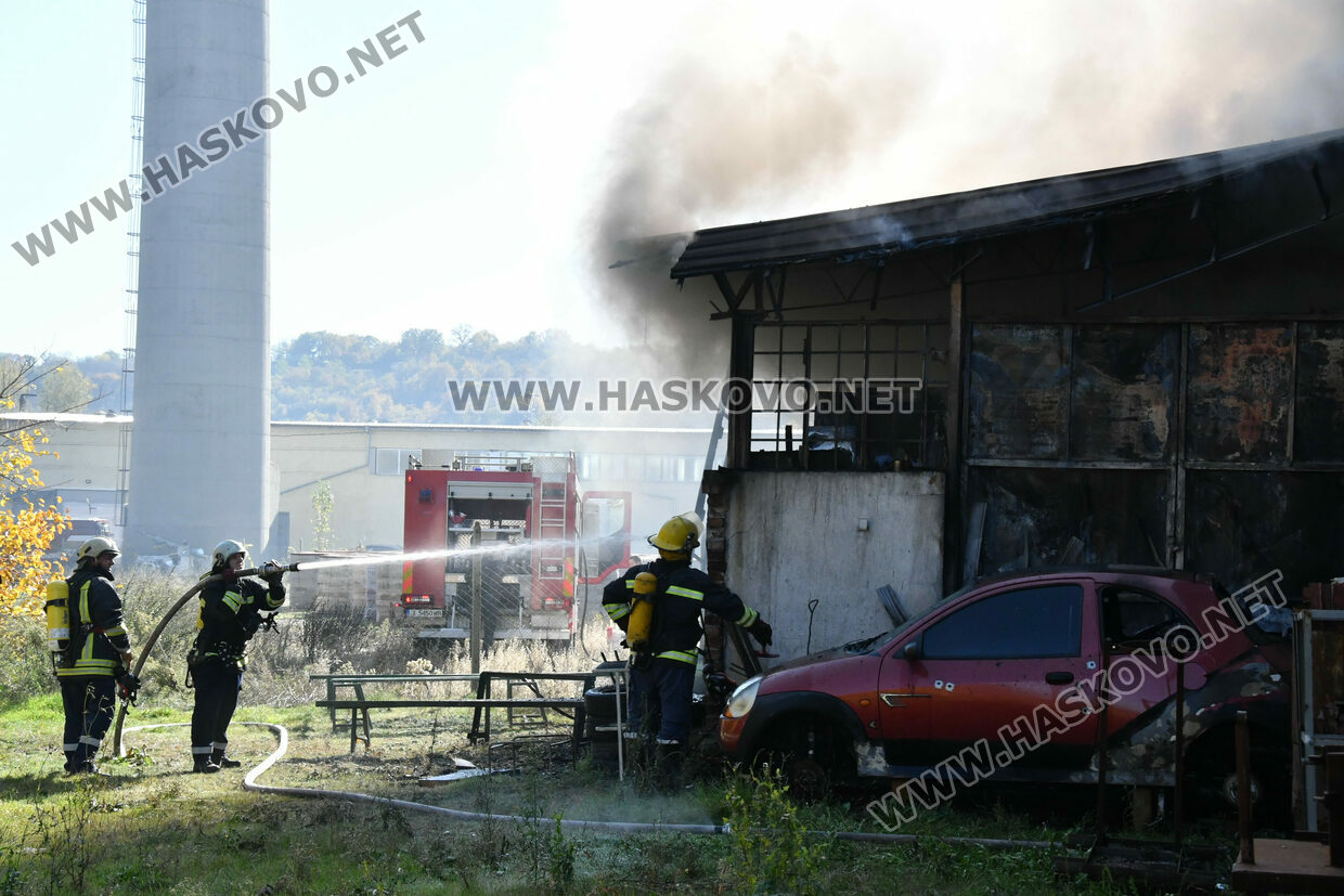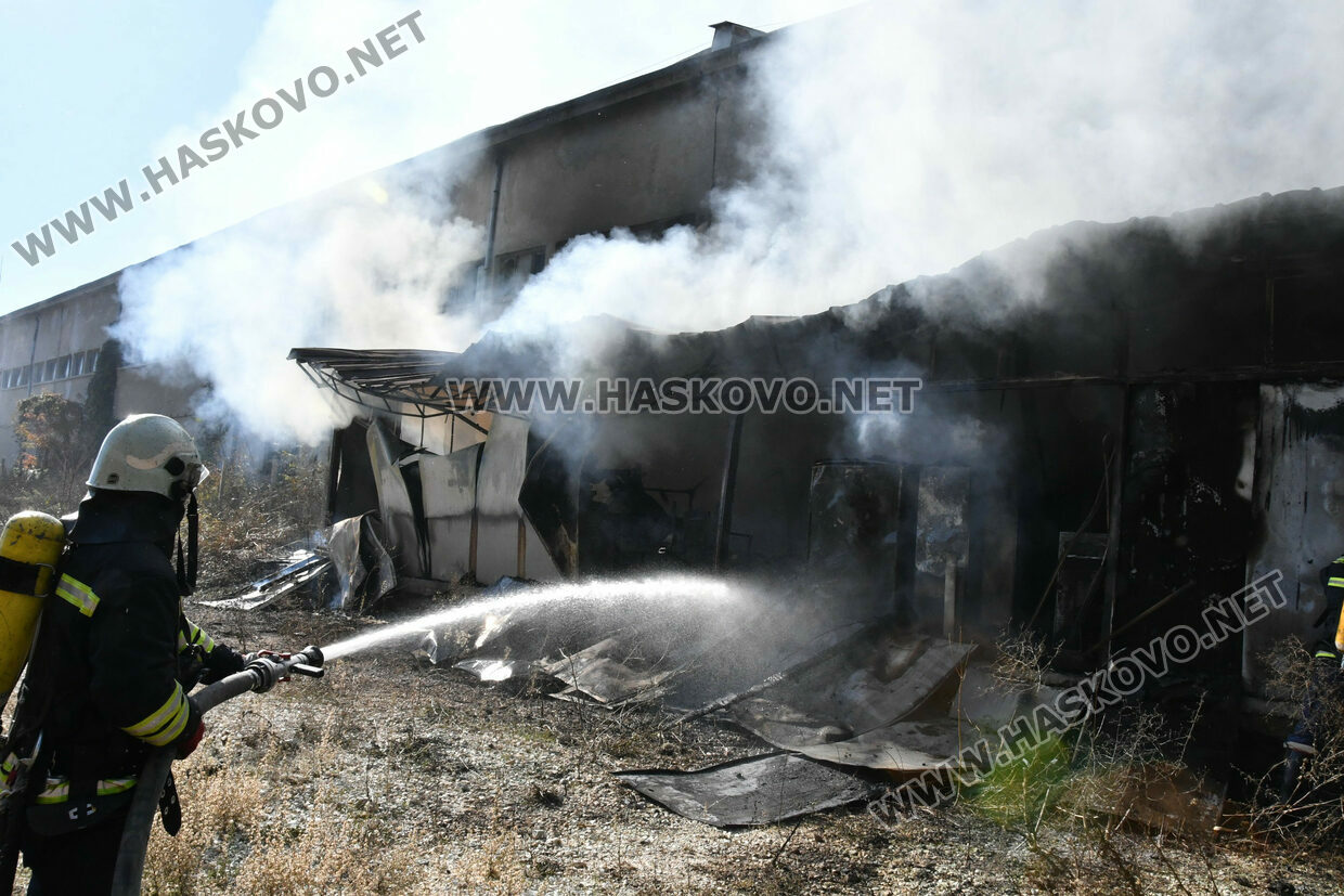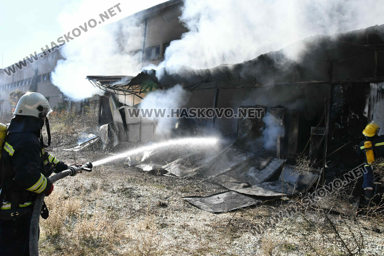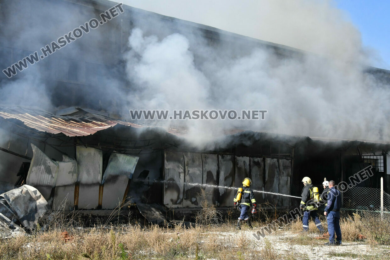 Голям пожар избухна днес по обед в бившия завод „Млада гвардия“ в Хасково. Според неофициална информация огънят е тръгнал от електрическа скара, на която работници са си приготвяли обяд.