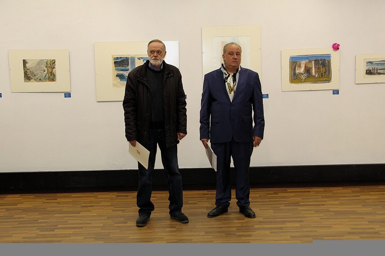 Беше връчен и поздравителен адрес от кмета Николай Мелемов на директора на галерията Иван Пеев.