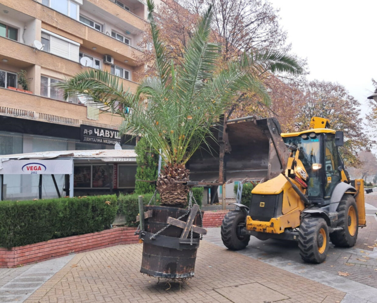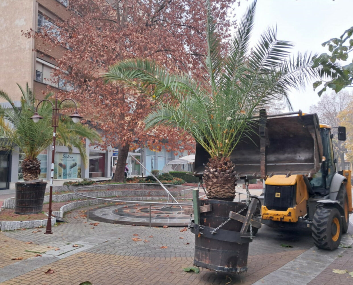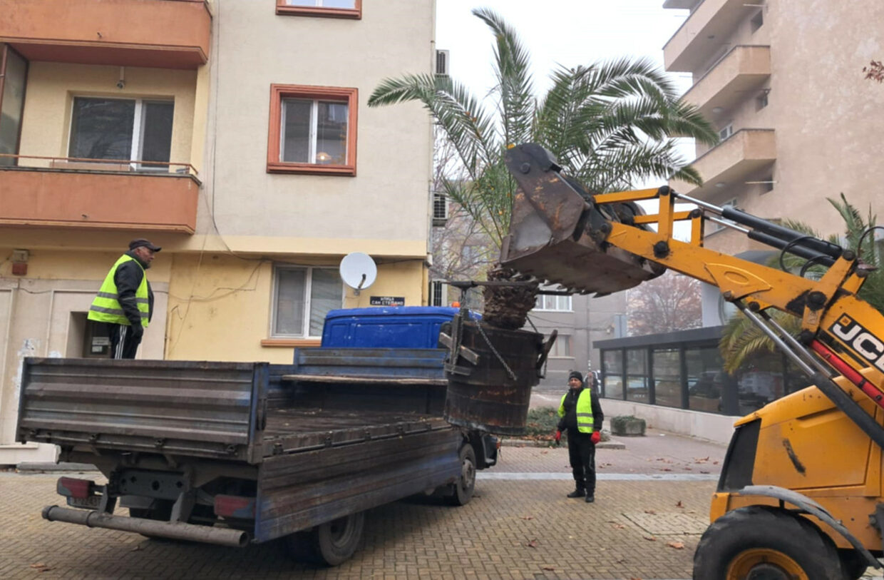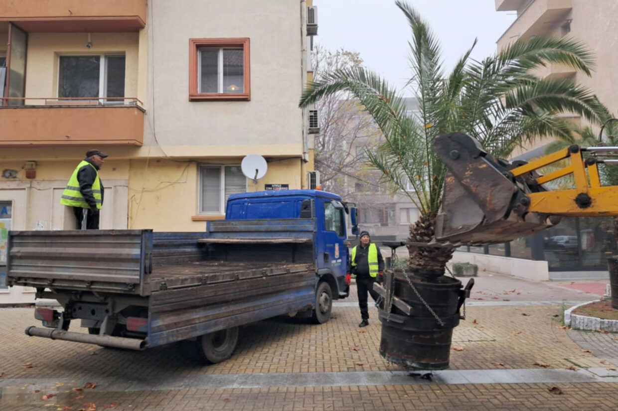 Служители на Общинското предприятие „Екопрогрес“ започнаха да прибират саксиите с палми от центъра на Хасково. Причината е захлаждането и очакваните ниски температури през есенно-зимния сезон.
