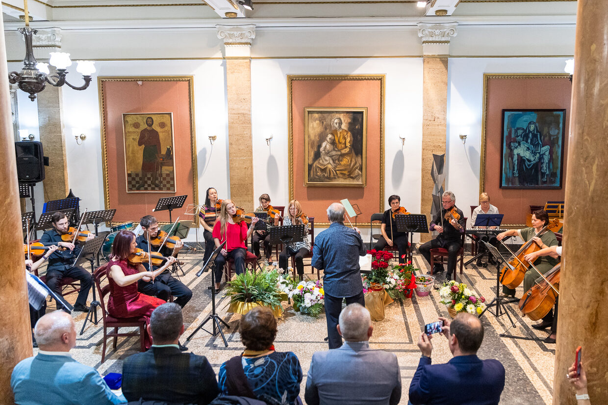 Маестро Христов също отправи поздрав към състава и към публиката, подчертавайки значението на оркестъра в културното развитие на Перник. Той си припомни, че е бил преразпределен в Перник и междувременно е откликнал на желанието на администрацията да създаде камерен оркестър, който да върне времето, когато в града е имало и симфоничен оркестър, но той е бил загубен. „Това е ужасно дълъг период. Разглеждайки афишите и поканите, виждаме изключително много неща, които са се случили“, коментира още Райчо Христов.
