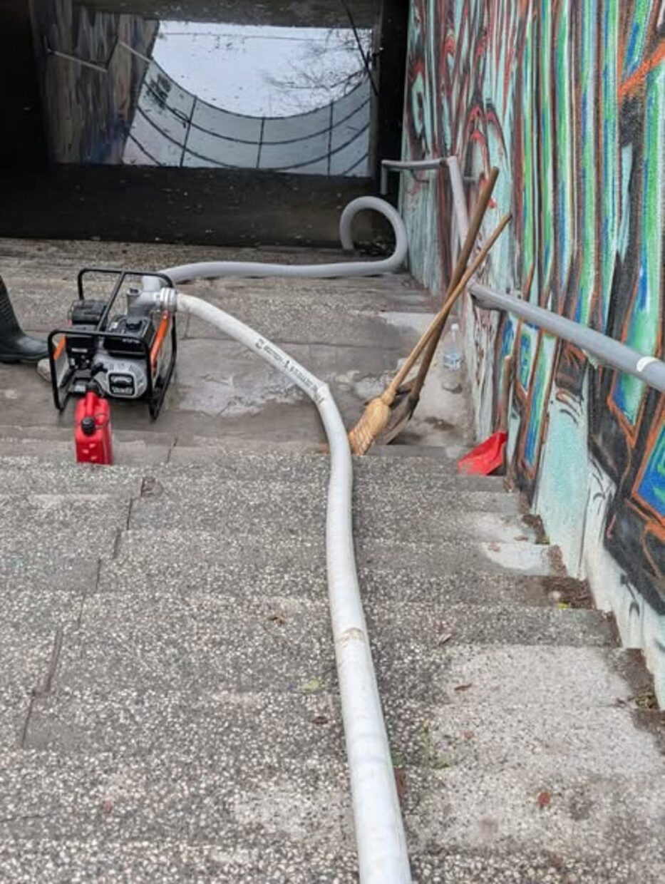Придошлата в следствие на валежите вода е довела до натрупване на отпадъци и клони, които временно са затруднили свободното преминаване на водата при един от пешеходните мостове на река Бучащица в района на ул. „Рашо Димитров“. Специализирана техника беше изпратена на място и участъкът е почистен.