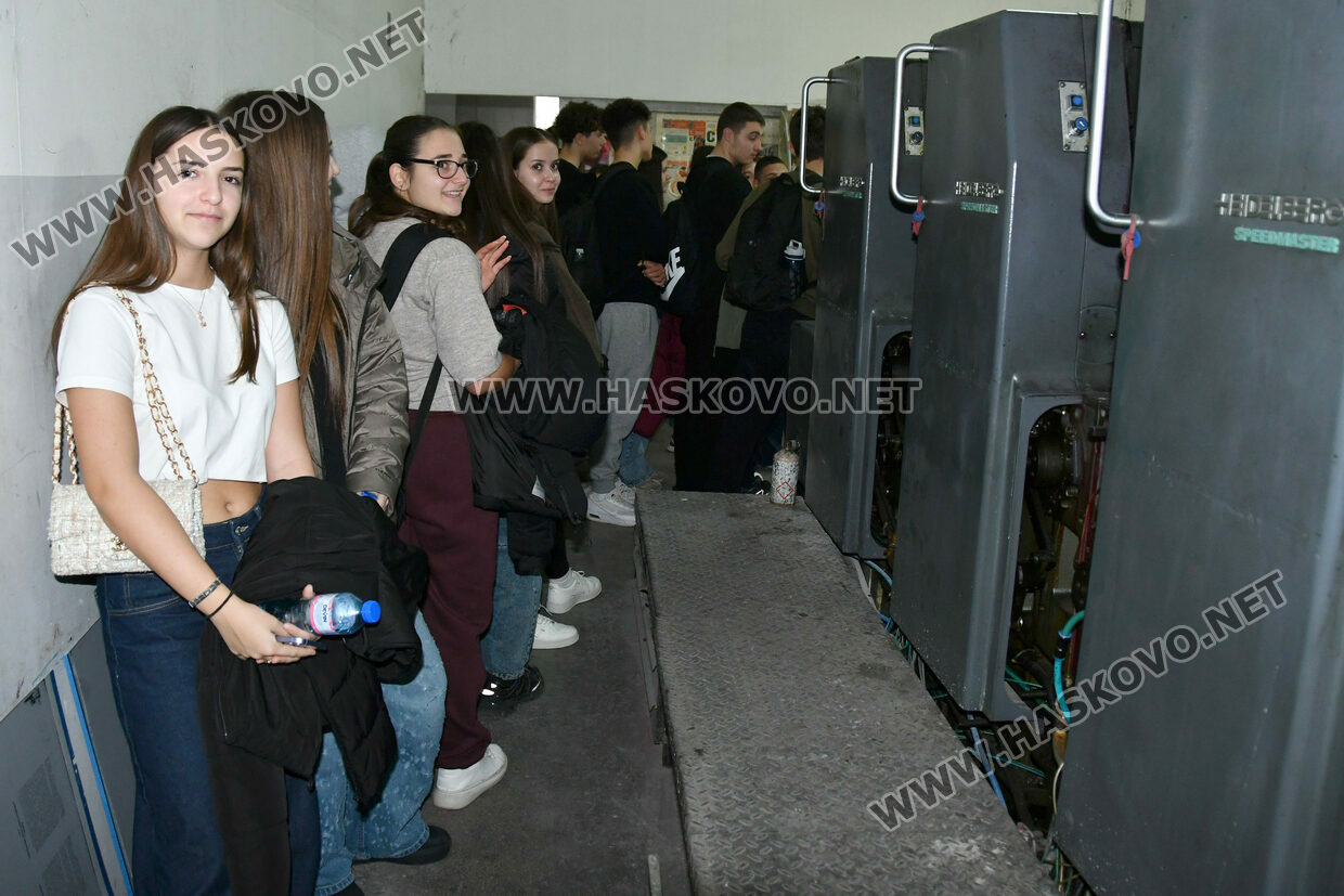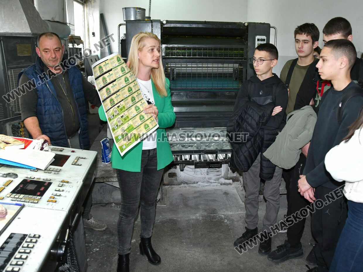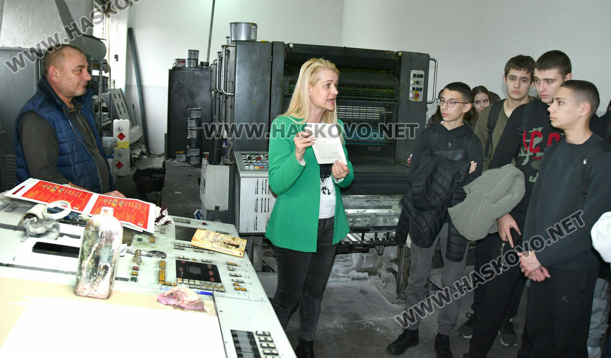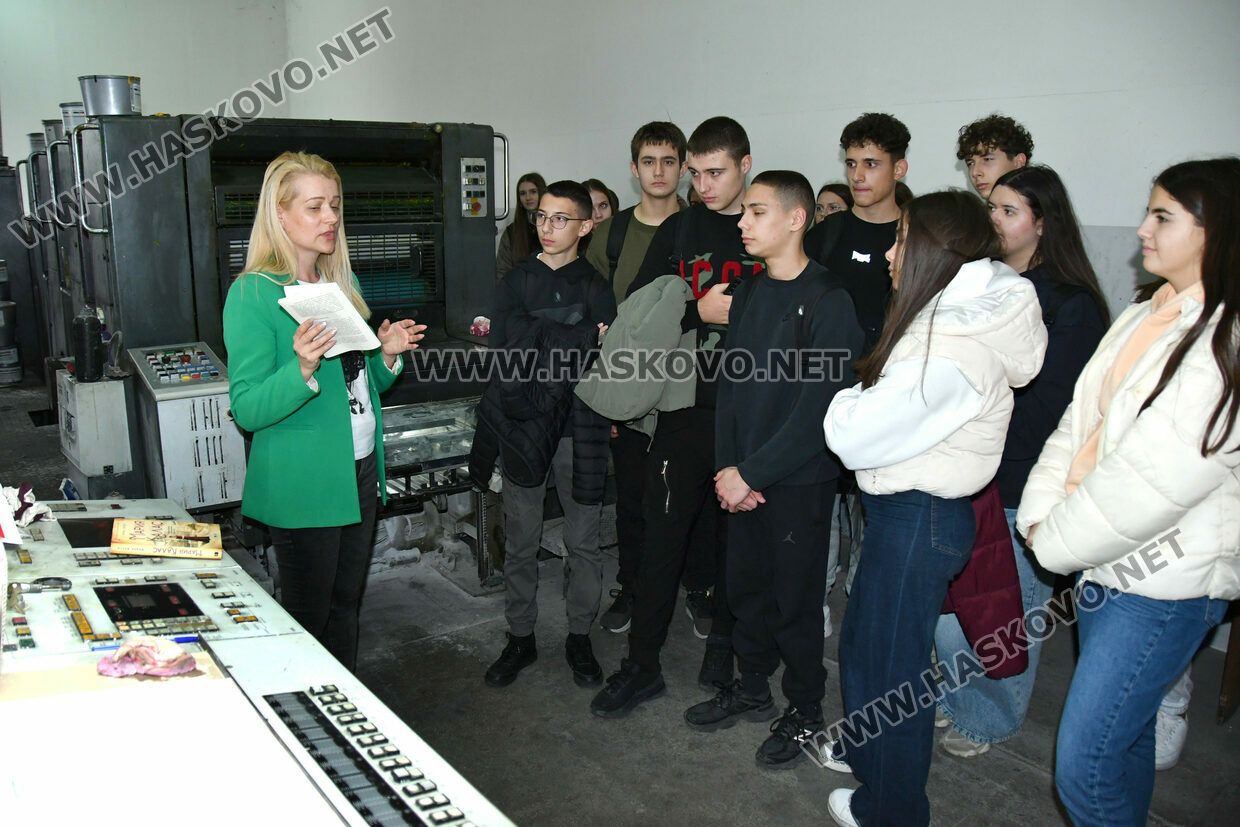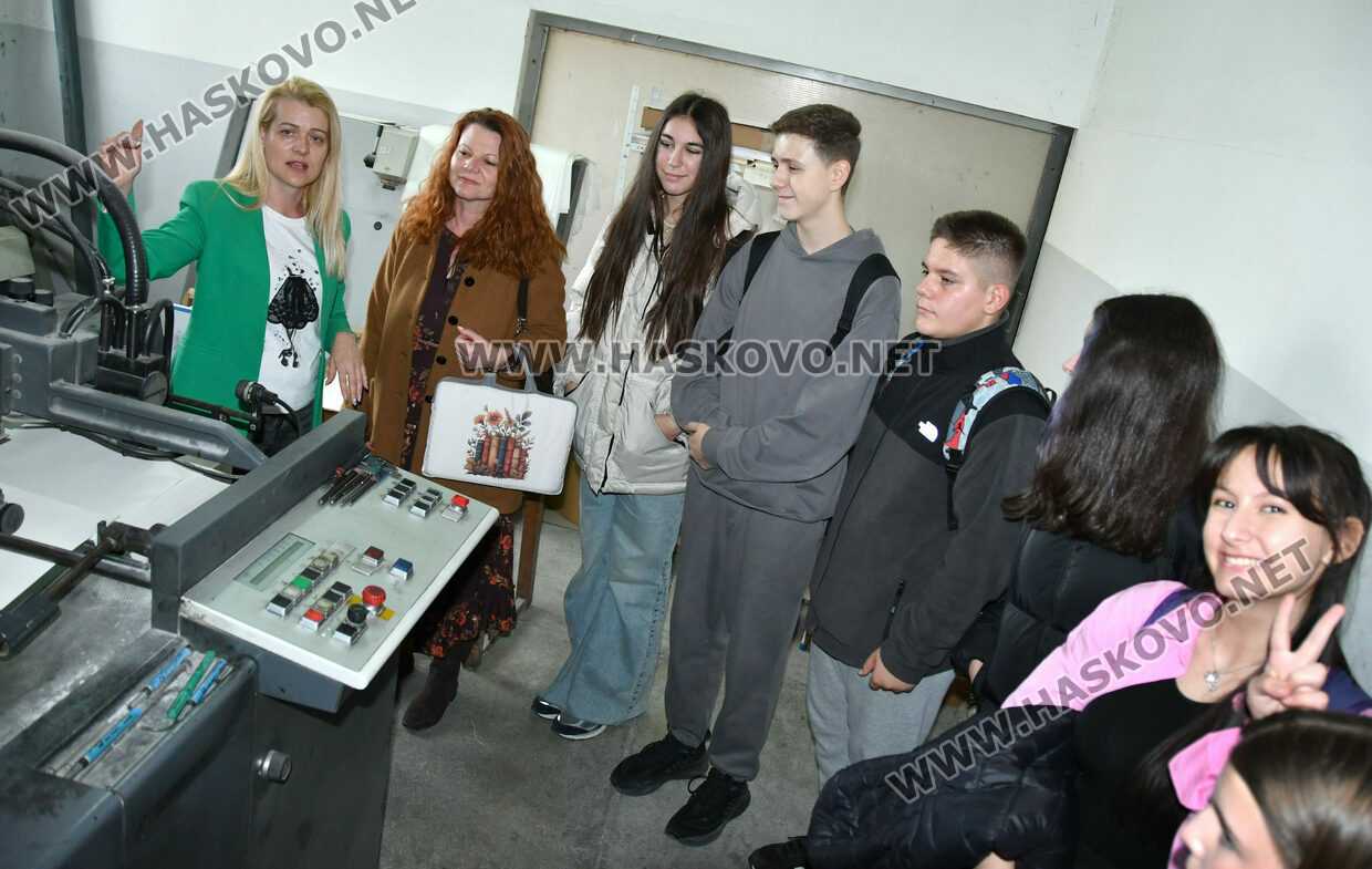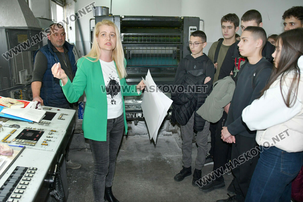 Ученици осми и девети клас от Езиковата гимназия „Проф. д-р Асен Златаров“ посетиха една от хасковските печатници в Деня на четенето - България. Голяма част от учениците са членове на литературния клуб „Общество на живите поети“.