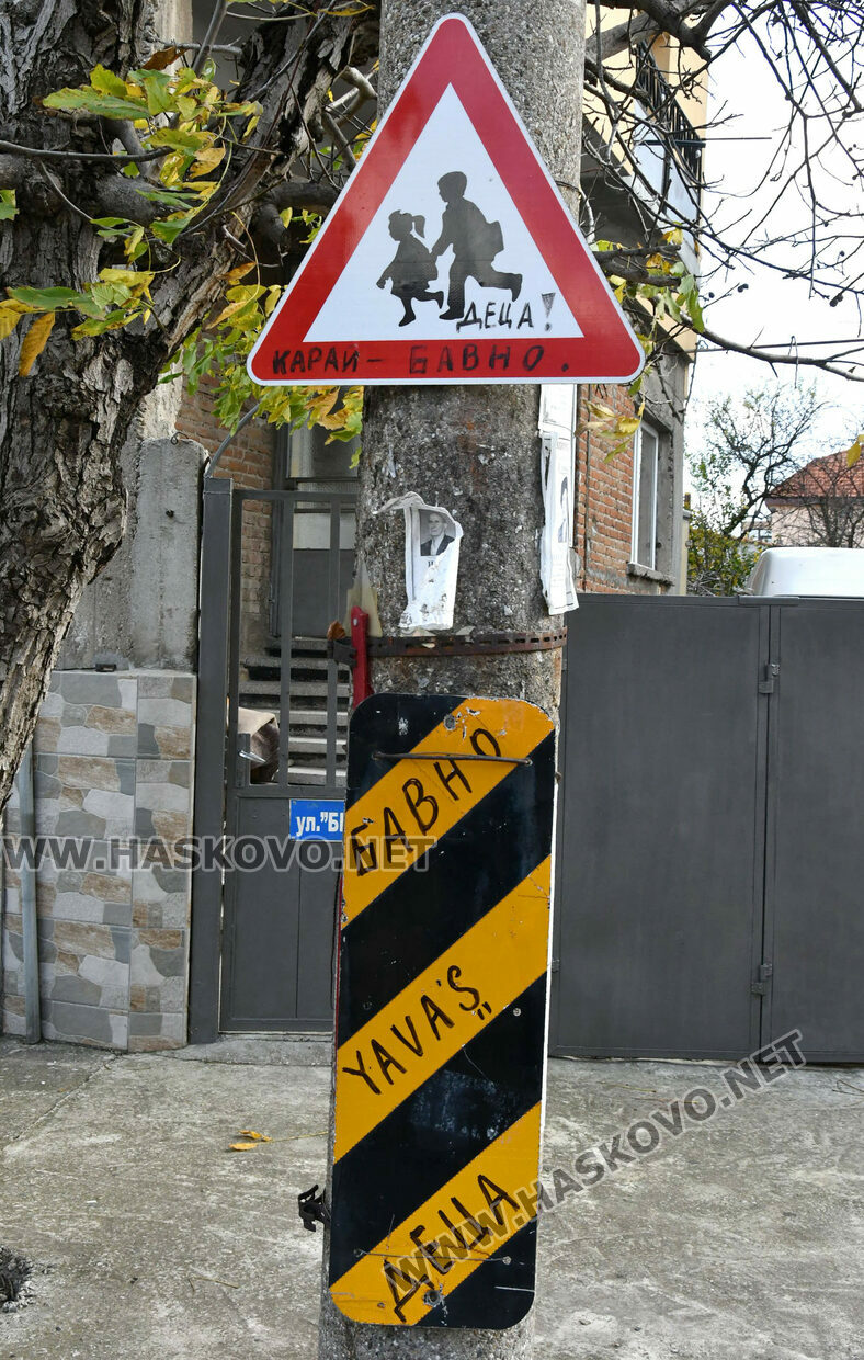 Самодейни подобрения по знаците в Хасково: Бавно, yavaş, деца!