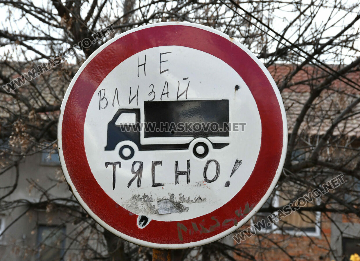 По някои от пътните знаци са изписани думи с маркер: „Не влизай, тясно!“, „Деца! Карай бавно“, „Бавно,yavaş, деца!”, „Деца, тротинетки!”.