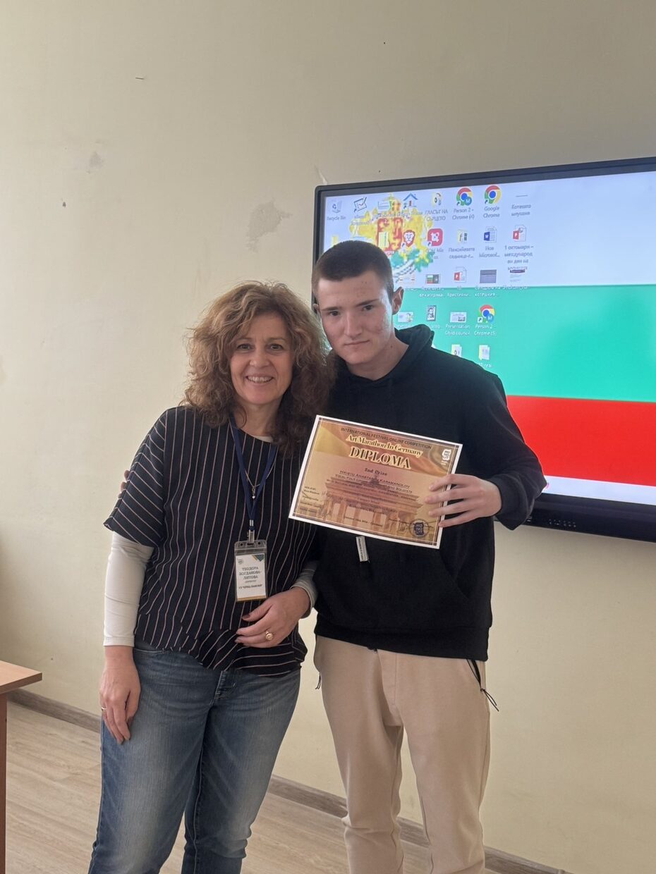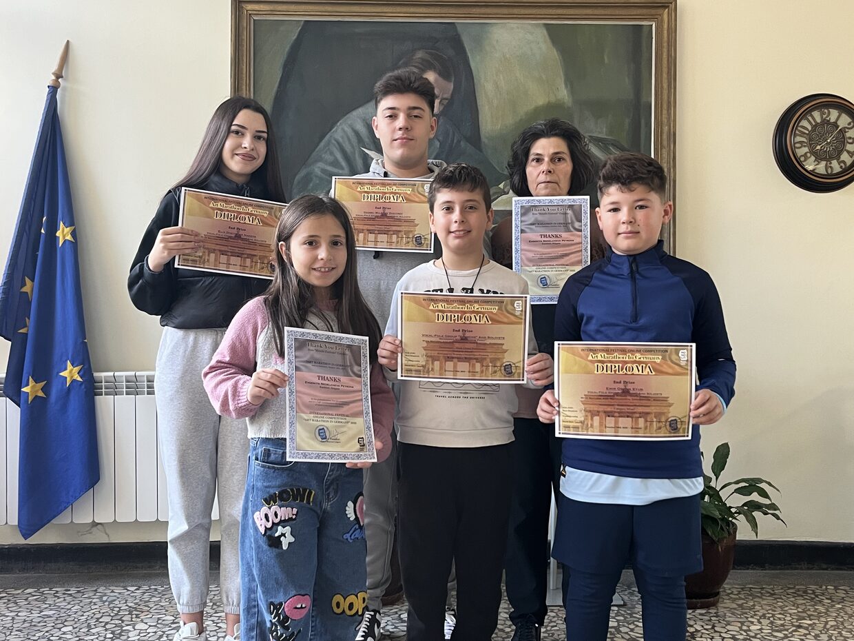 На специално организирано тържество в СУ "Отец Паисий" директорът на училището Теодора Богданова - Литова, подчертавайки значимостта на този успех за училището и общността, връчи дипломите на изпълнените с вълнение и гордост наградени участници: Амира Бекир – 2.а клас, Дария Боговска, Емир Еюб, Никола Славов от 3.д клас - солист, Николета Зеирова, Ямур Хайрула от 3.в клас, Кристиан Сербезов от 4.г- солист, Дилем Али - 4а клас, Мария Грахльова – 4.д клас, Жесмина Найденова - 5.в клас, Елия Накева – 8.а клас, Георги Димитров от 11.а клас, Христо Караманолов от 12.б клас. За първа година групата участва и в надпреварата в номинация с народно пеене и възрастова категория 7 - 8 години. Малката възпитаничка от Вокалната група Амира Бекир от 2.а клас впечатли и завладя сърцата на международното жури със своите прекрасни изпълнения на народните песни. Тя се отличи с Диплома, Лауреат 2 степен, второ място в нейната възрастова категория. Всички те получиха дипломи, а Евгения Пейкова – благодарствено писмо - за висок професионализъм и креативност, връчени им от директора на училището Теодора Богданова - Литова с пожелание за още творчески успехи. На тържествената церемонията присъстваха родители, ученици и учители.