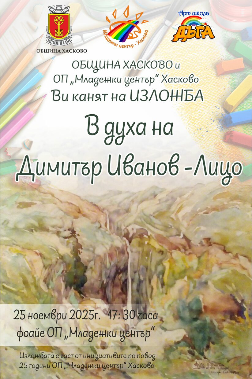 Тази година те са вдъхновени от творчеството на емблематичния хасковски художник Димитър Иванов – Лицо. Община Хасково и Младежки център Хасково канят всички ценители на изобразителното изкуство на откриването на уникалната изложба от детски творби, вдъхновени от Лицо, под надслов „В духа на Димитър Иванов – Лицо“ утре, 25 ноември 2025 г., от 17:30 часа във фоайето на Младежки център.
