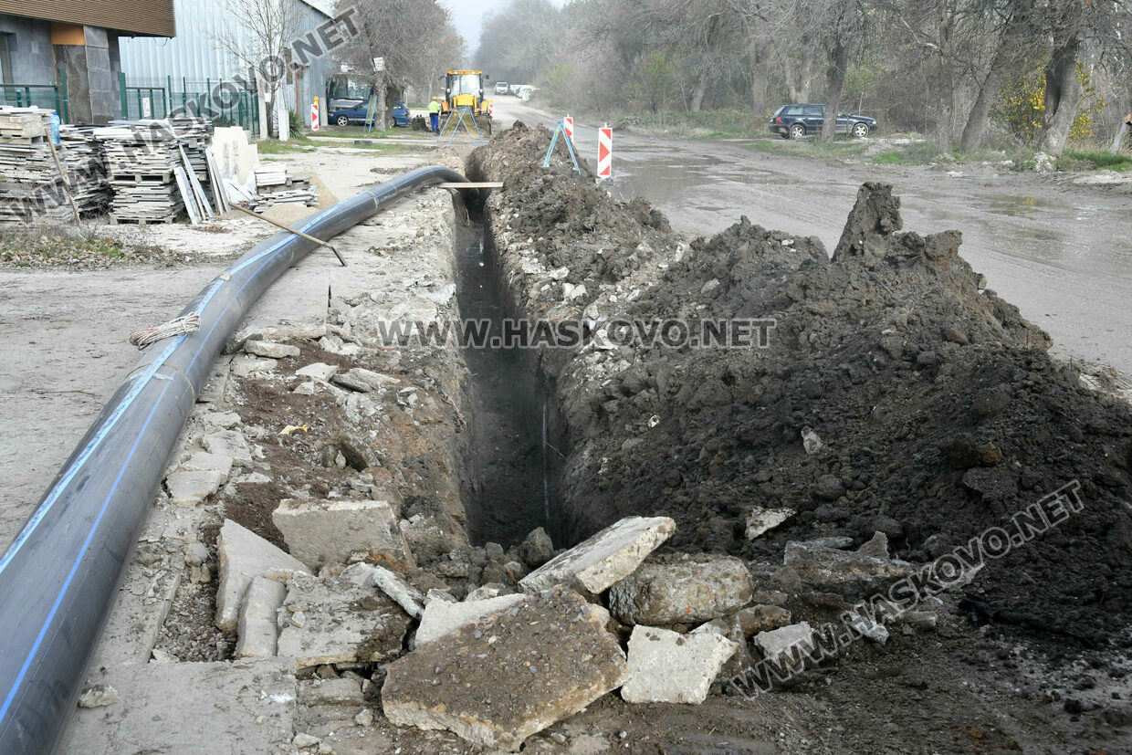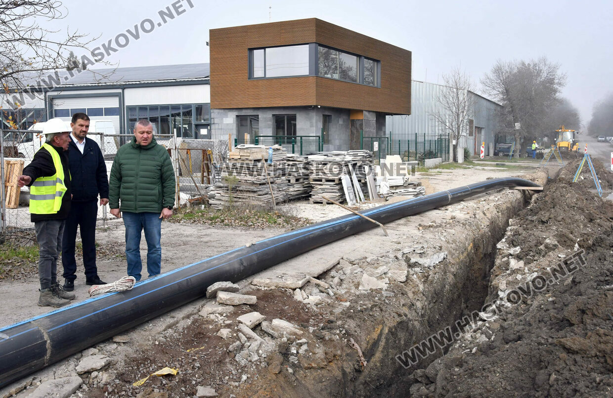 на общо 14 водопровода в града“, съобщи кметът на Община Хасково Станислав Дечев. Той и заместник-кметът Динко Тенев бяха на терена на новостроящия се водопровод. От 2021г. до сега Община Хасково сменя над 27 км. водопроводи. Това е най-мащабната инвестиция във ВиК-инфраструктурата на града от самото ѝ изграждане до момента.