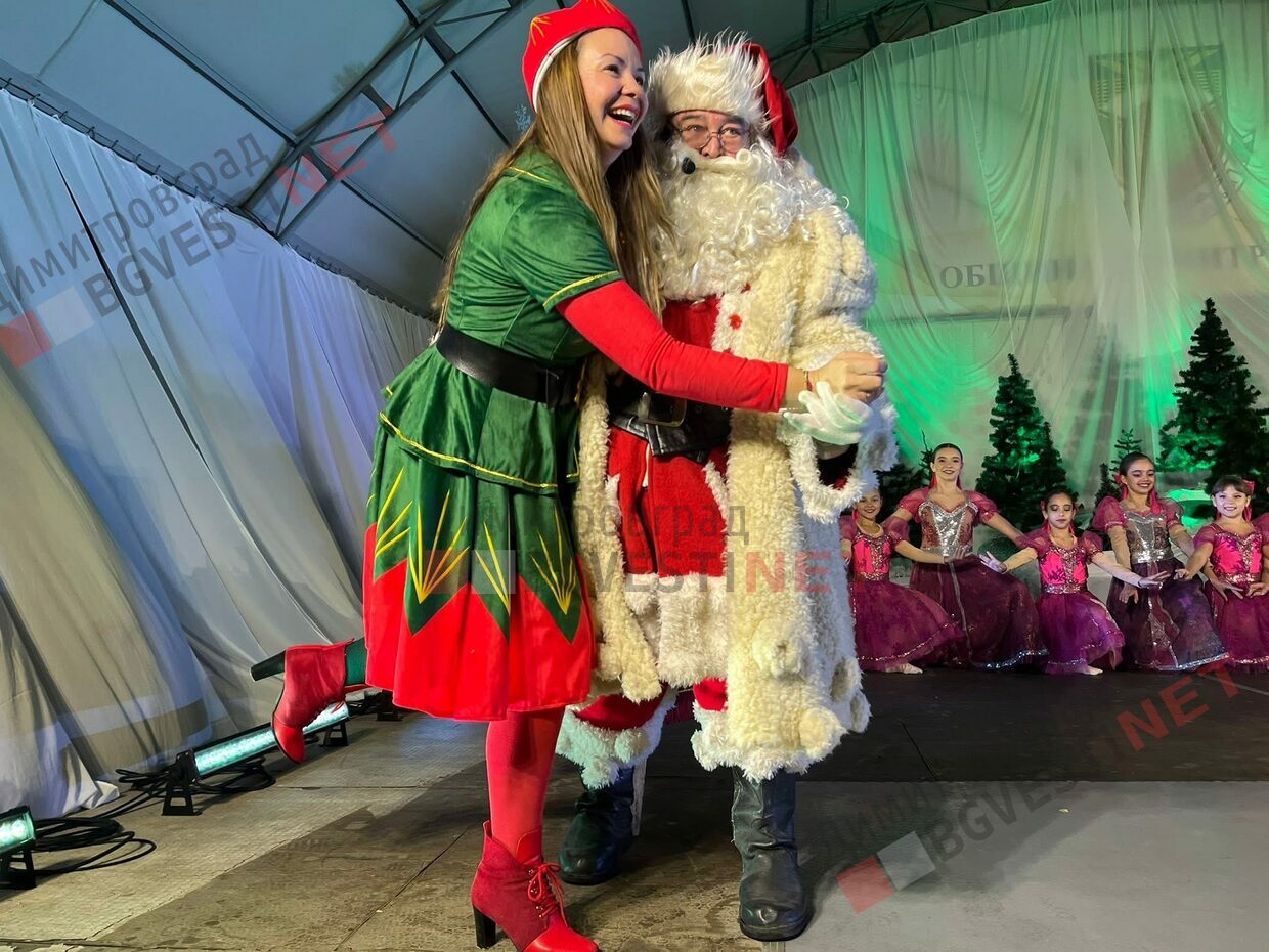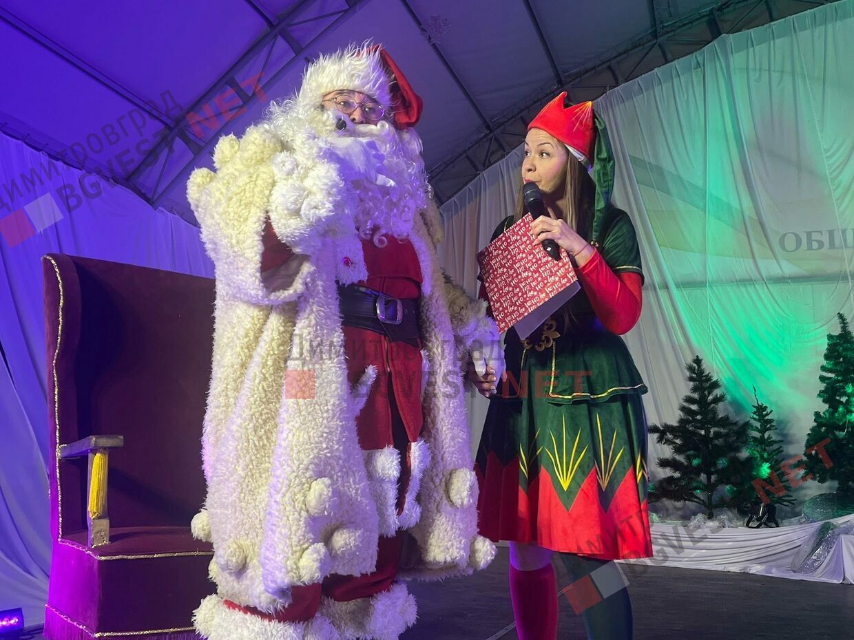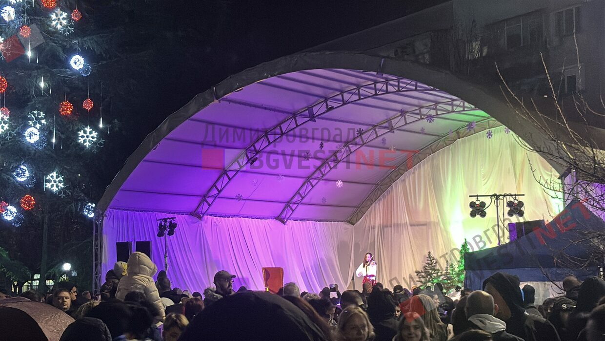 Лично Дядо Коледа светна огромната елха с помощта на хилядите деца, дошли за събитието на площада в Димитровград, последвана от пищна заря.