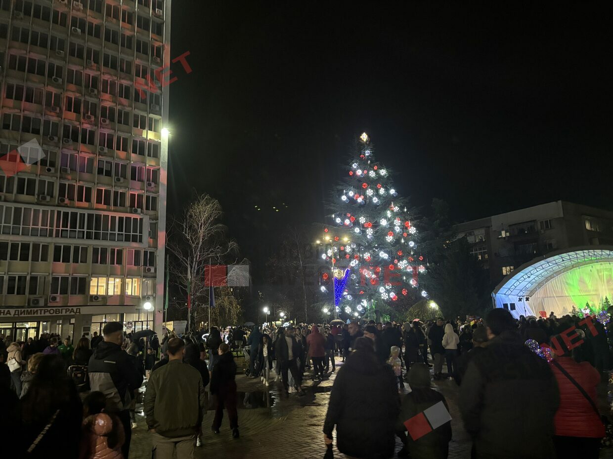 Грейнаха светлините на най-голямото живо Коледно дърво в Европа - над 30 метровата елха на площада в Димитровград.