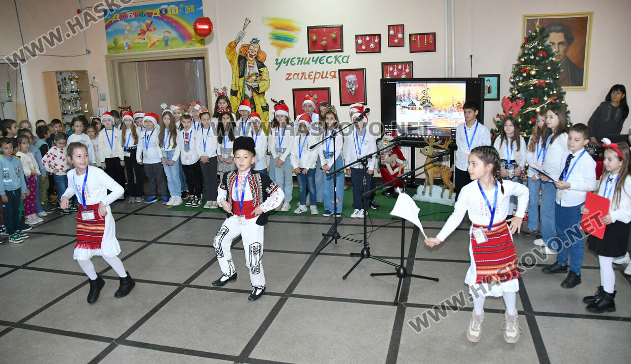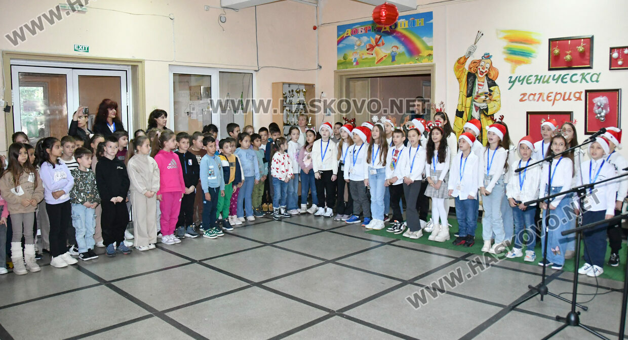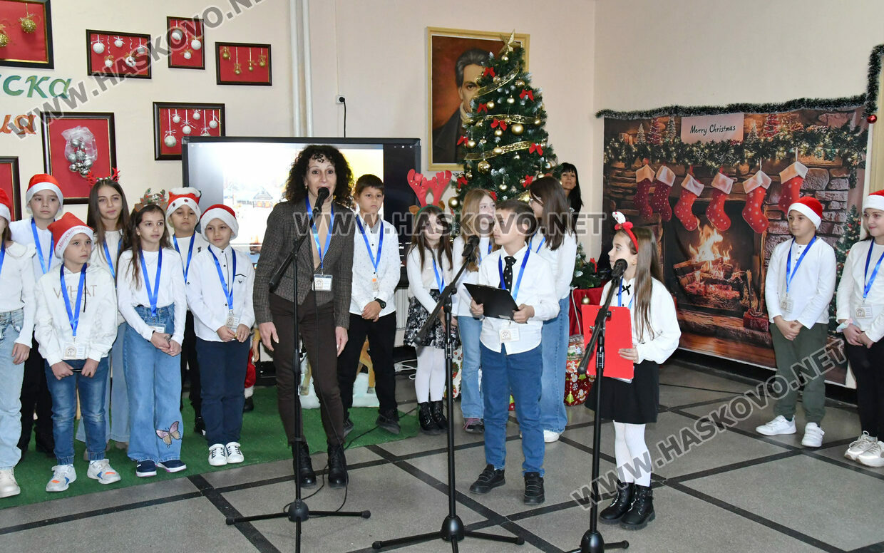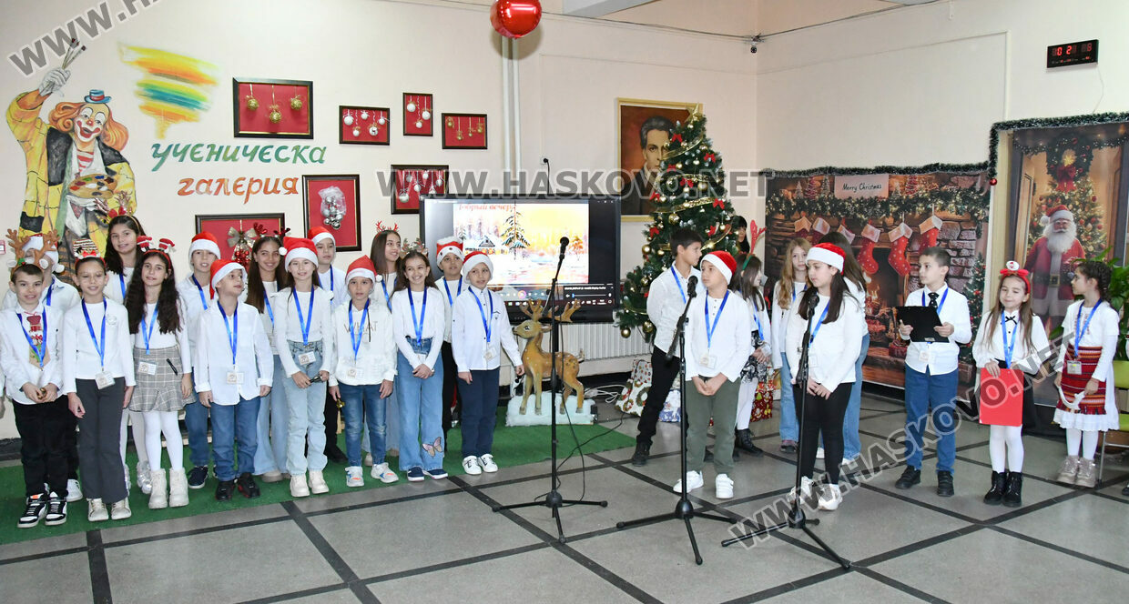 По традиция за предстоящия празник имаше тържество във фоайето на училището с участието на ученици, на което гостуваха деца от хасковската детска градина „Елхица“.