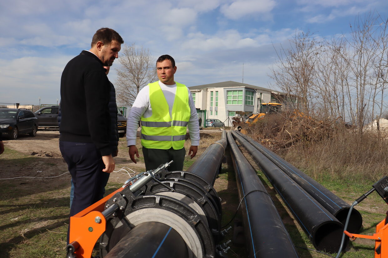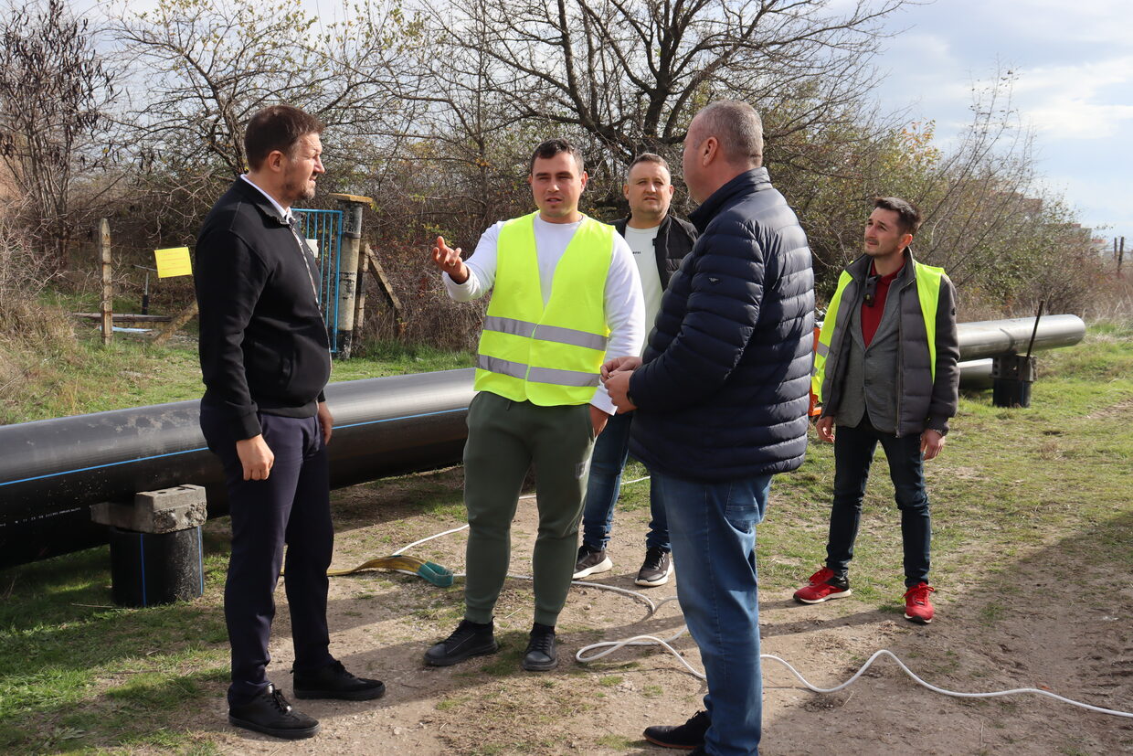 Новият водопровод е с дължина 1760,50 м. Кметът на Хасково Станислав Дечев и заместникът му Динко Тенев провериха хода на строителните работи по трасето, което доставя вода за стотици домакинства.