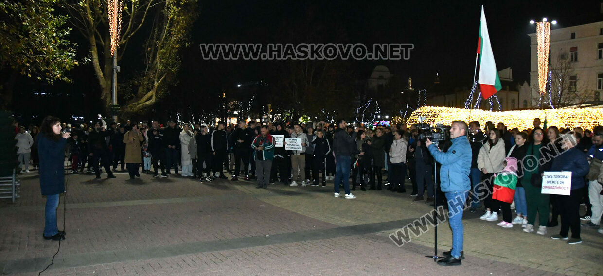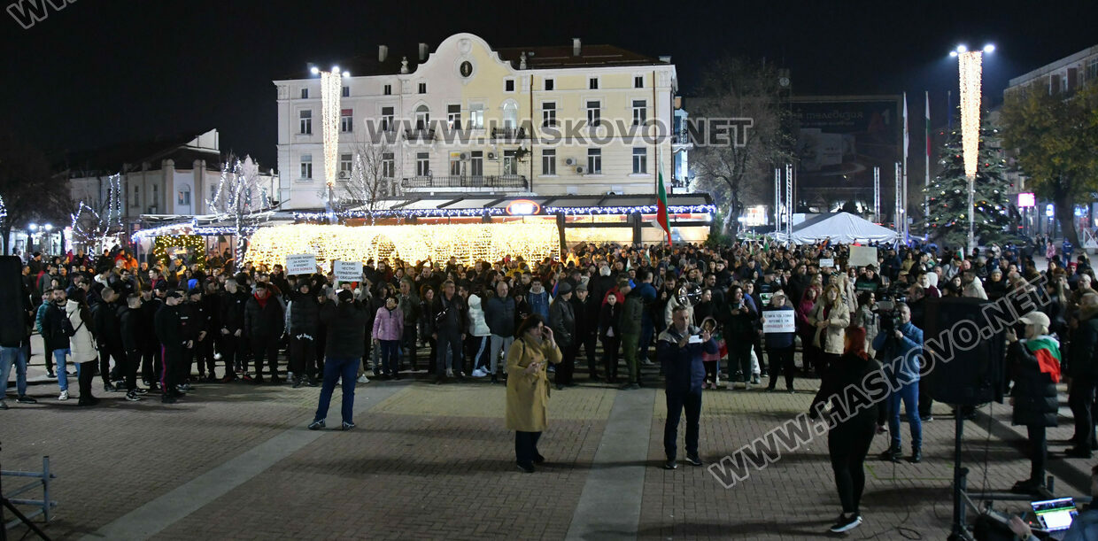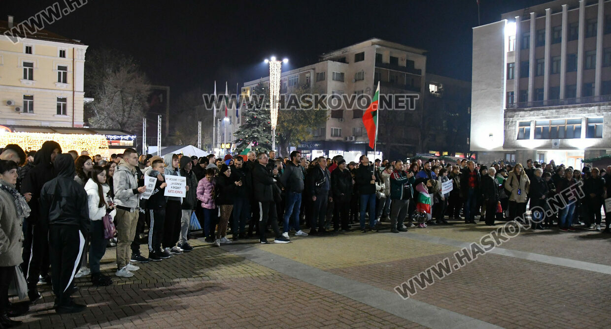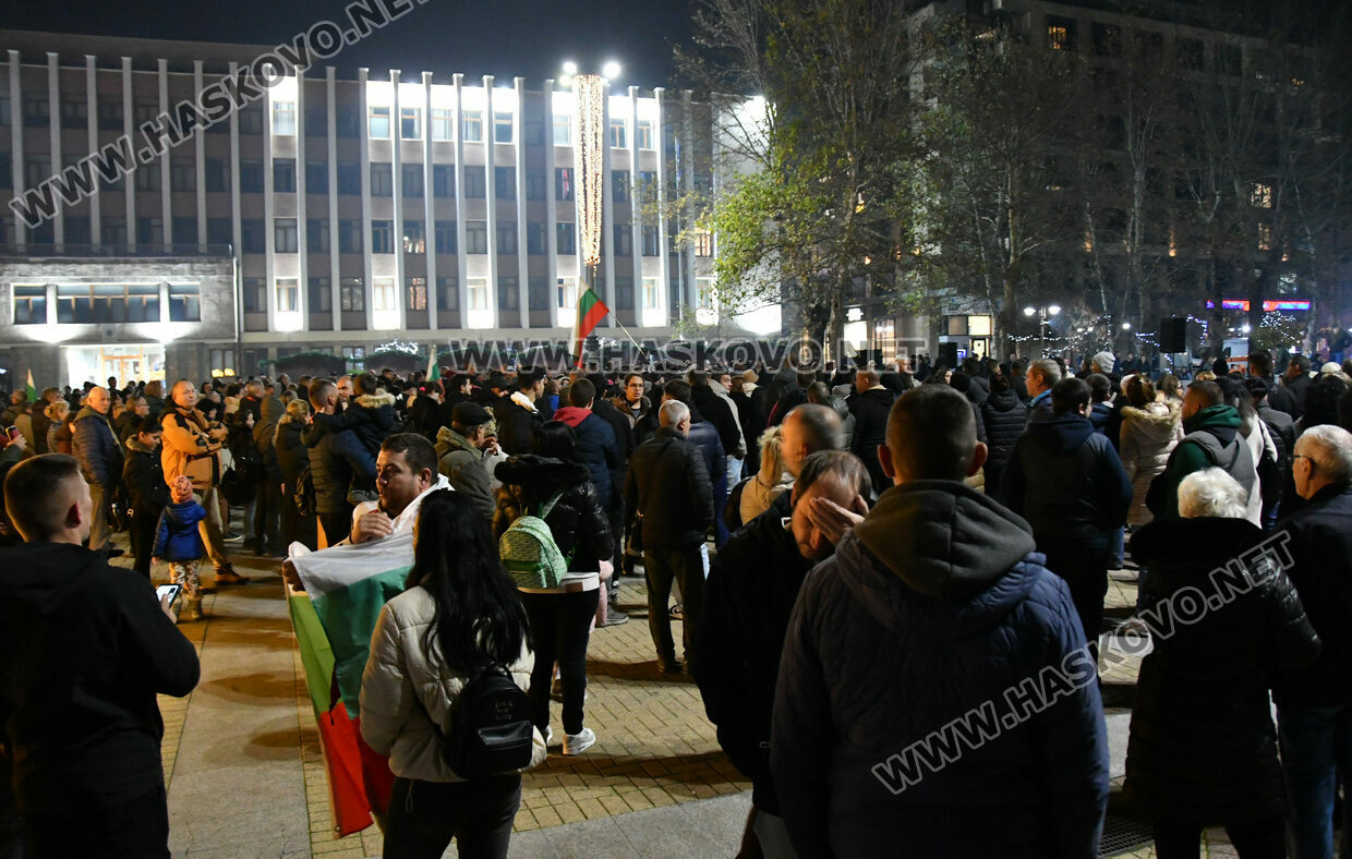 Между 200 и 300 души изпълниха централния хасковски площад „Свобода“ на антиправителствен протест. Множеството скандираше „Оставка“ и поиска незабавна смяна на корумпирания модел на управление на държавата, повече социални придобивки, по-високи доходи и бъдеще за децата в Хасково и България.