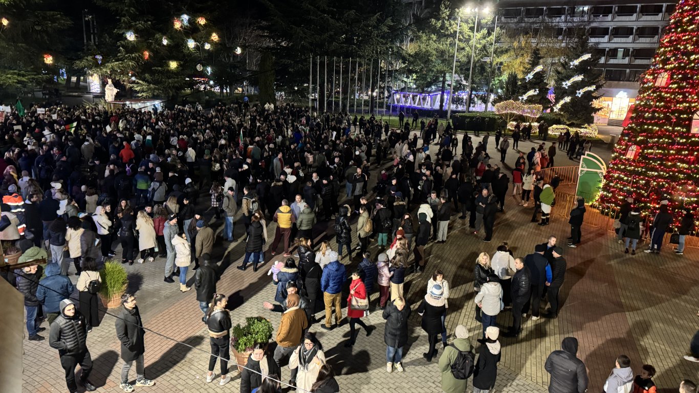 Демонстрацията е на площадното пространство пред зала "22 септември" в областния център. Протестът започна с кадри от събития, предхождащи първия протест в началото на месеца.