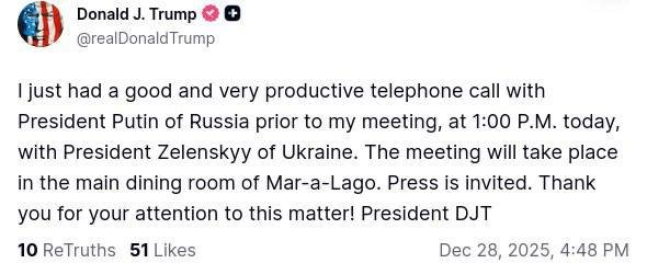 Час преди началото на преговорите американският президент съобщи в социалните мрежи, че е разговарял с руския си колега Владимир Путин.